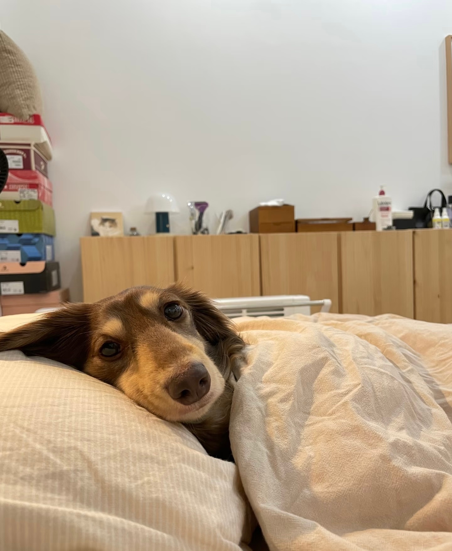 小狗有长长的睫毛和粉粉的爪子