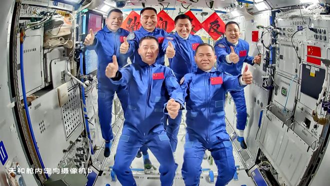 神舟二十号乘组与神舟二十一号乘组在轨合影|央视新闻