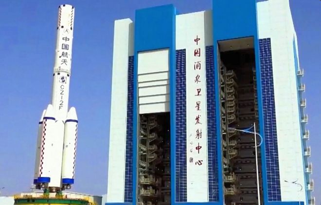 在酒泉卫星发射中心执行应急救援值班任务的长征二号F型运载火箭|央视新闻