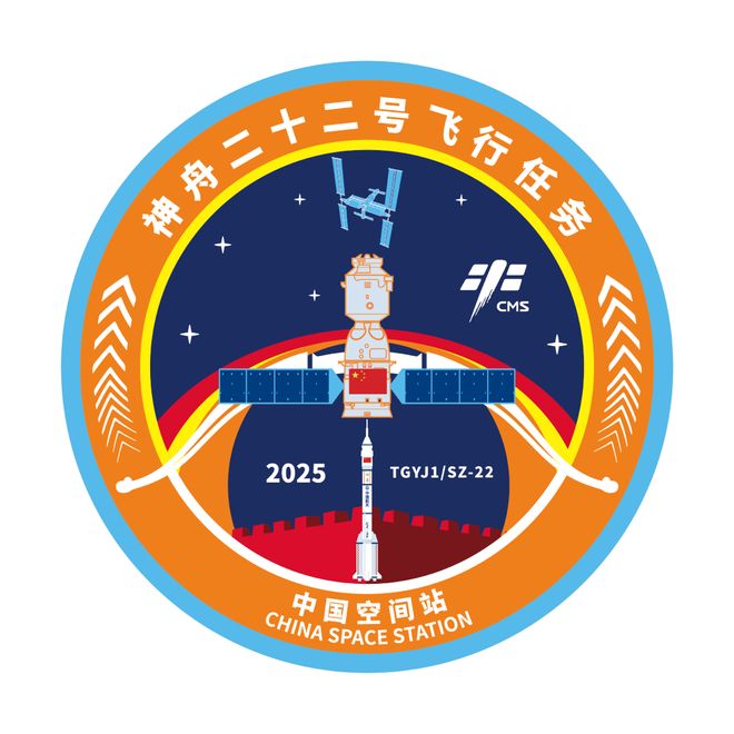 神舟二十二号飞行任务标识,其中的“TGYJ1”指的便是“天宫第一艘应急飞船”|CMS