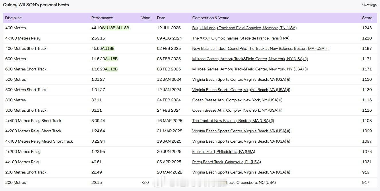 U18男子400米(长、短道)世界最佳成绩创造者 Quincy Wilson 决定加入马里兰大学 University of Maryland。