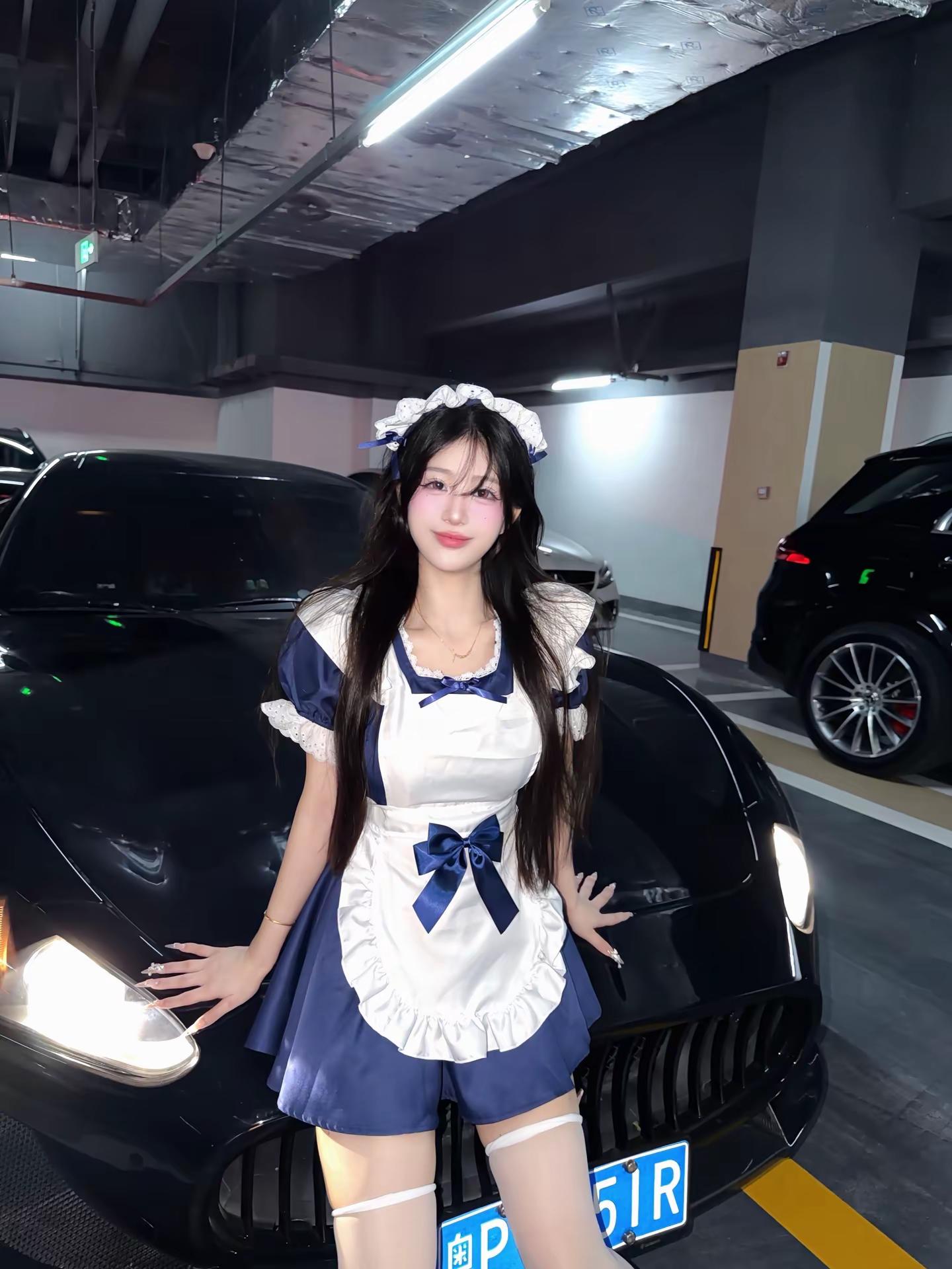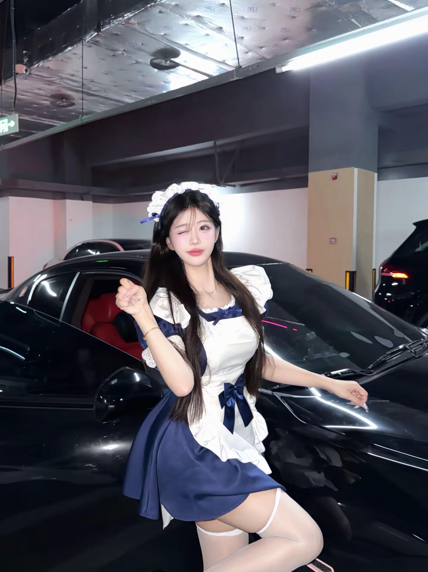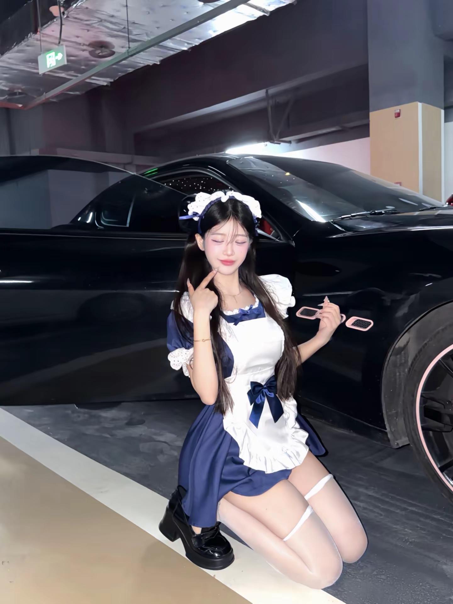 今天是听话的粘人小猫咪。美女 辣妹穿搭 女仆装 气场全开 停车场拍照