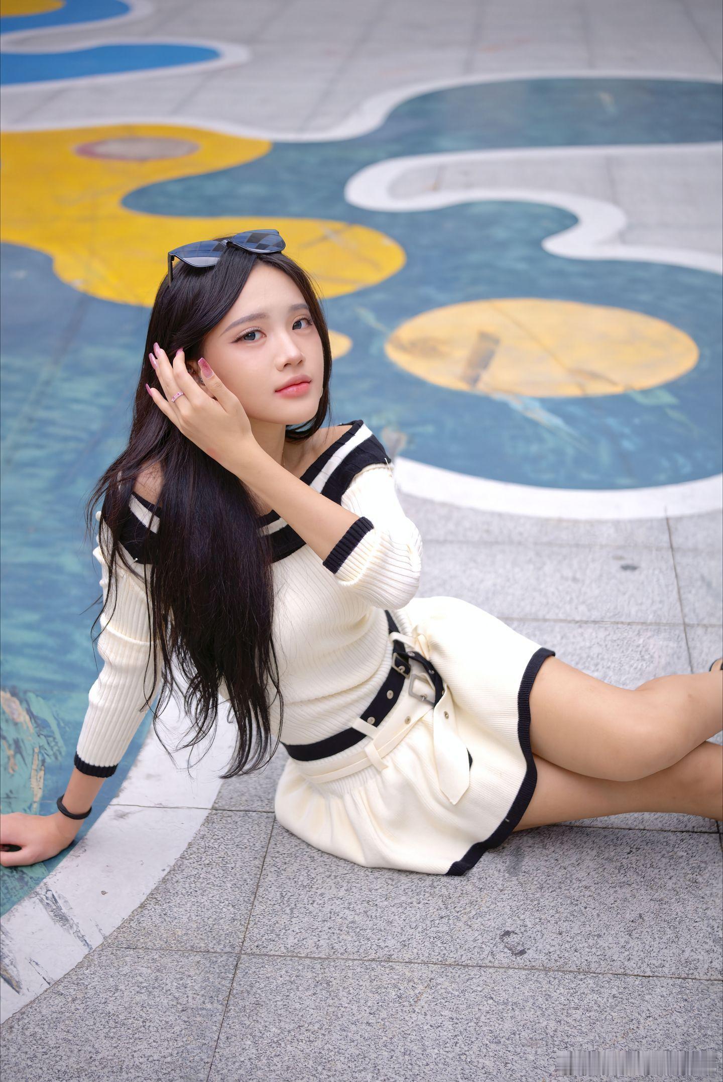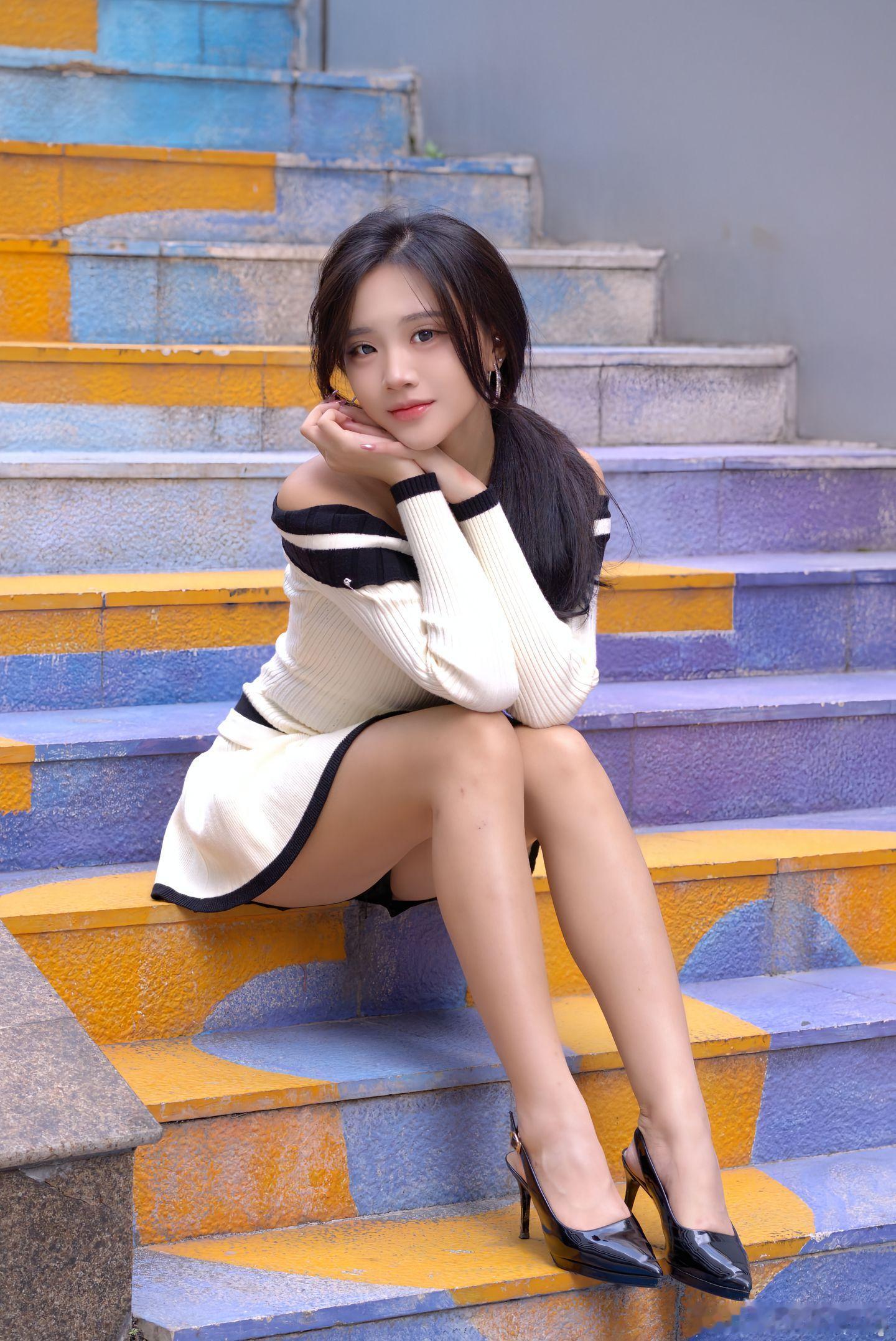 黑色外套配白色毛衣,加黑丝,一个悠闲的穿搭