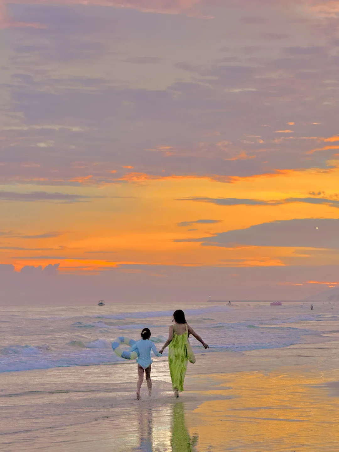 在海边躺平发呆,和家人一起踏浪捡贝壳
