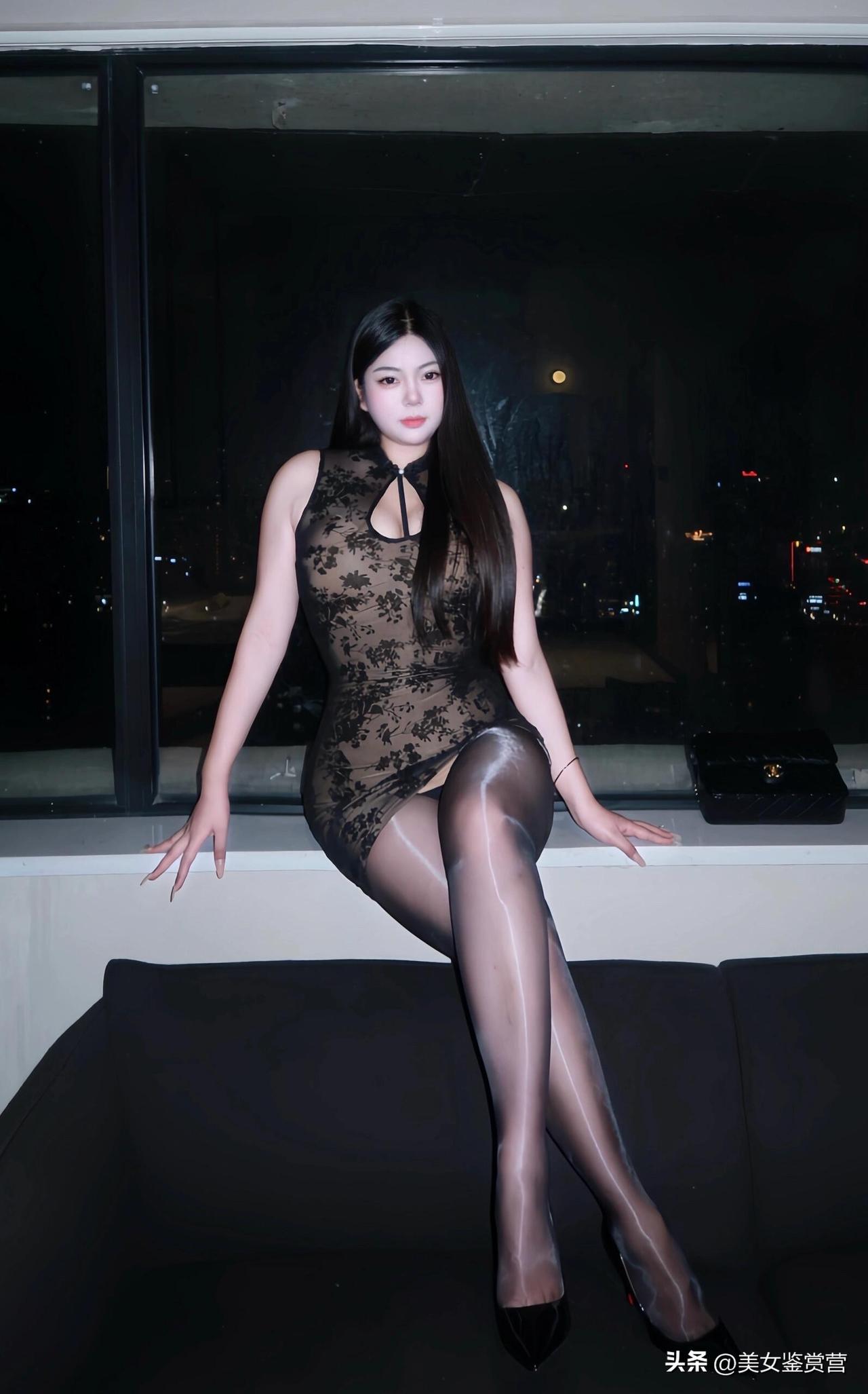 夜幕下的城市灯火是这份温柔的背景板。一袭墨色蕾丝旗袍,将东方韵味与现代性感巧妙融合,精致的立领与镂空设计,在复古中藏着不经意的小心机。 细腻的黑丝与旗袍的蕾丝纹理相互呼应,让腿部线条在朦胧中更显修长,搭配一双红底高跟鞋,为整体造型增添了一抹点睛的亮色。这样的搭配,既保留了旗袍的典雅,又在细节中透出一丝妩媚,很适合在夜晚的都市里,赴一场浪漫的约会或参加一场优雅的晚宴。 轻奢蕾丝黑裙 高级轻奢蕾丝裙 黑裙奢韵 轻奢旗袍礼服 黑金旗袍