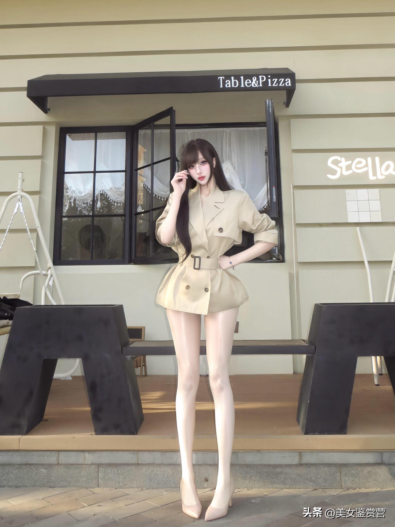 暖调的午后,米色系的短款风衣在光影里晕开一层柔和的光泽。 收腰设计与双排扣的细节,让利落的线条里裹着几分随性的优雅。 浅肤色丝袜与裸色高跟鞋的搭配,将腿部线条延伸得纤细修长,为整体增添了几分慵懒的温柔。 身后的玻璃门窗与简约的建筑线条,像是将时光也放慢了节奏。 这一身穿搭,既有都市的精致感,又带着一丝法式的松弛,仿佛是为这个午后量身定制的慵懒氛围。穿上高跟鞋后的感受是怎样的? 哪种身材的女人穿衬衣半裙好看 怎样穿高跟鞋才不累