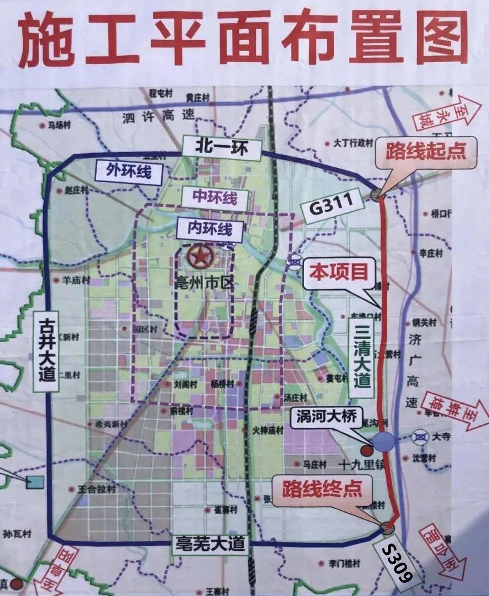 亳州市,大外环公路。 由古井大道,亳芜大道,三清大道,北一环路组成的亳州市外环公