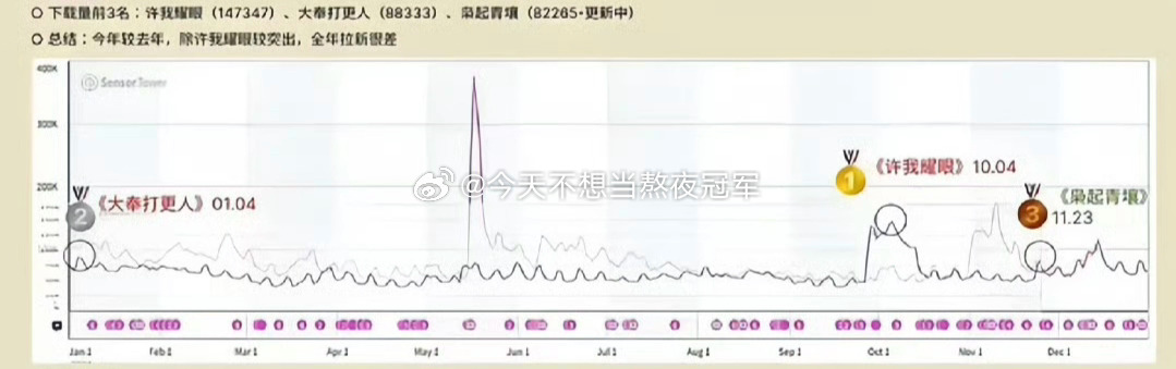 四大平台今年下载量峰值图🈶,可以和站内拉新年榜结合在一起看,符合友友们们体感嘛🐧许我耀眼、大奉打更人、枭起青壤🥝漂白、白色橄榄树、唐朝诡事录3👖难哄、藏海传、暗河传🥭国色芳华、五福临门、韶华若锦