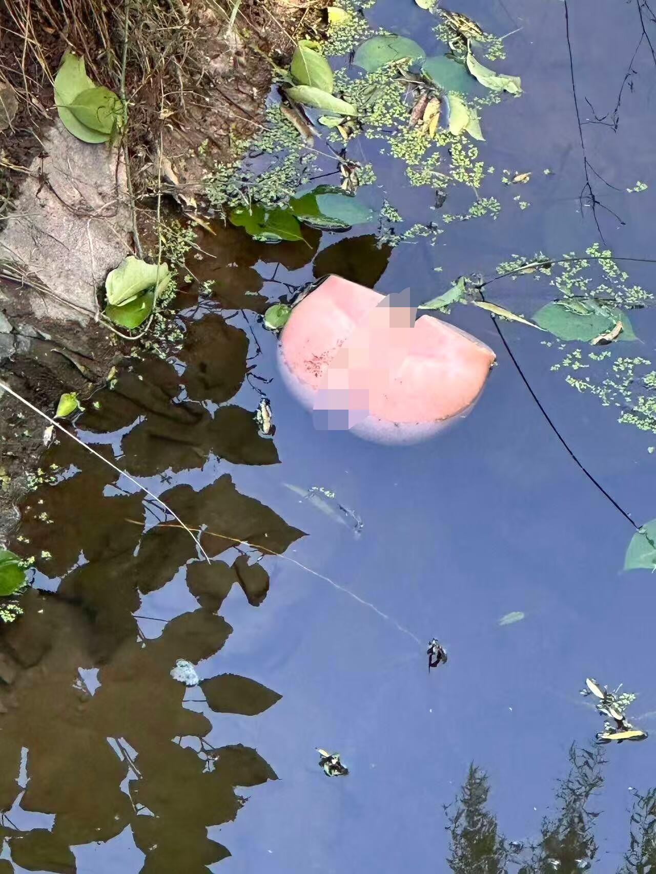 一学校旁边的水塘里出现这么个东西,也看不清楚是什么?