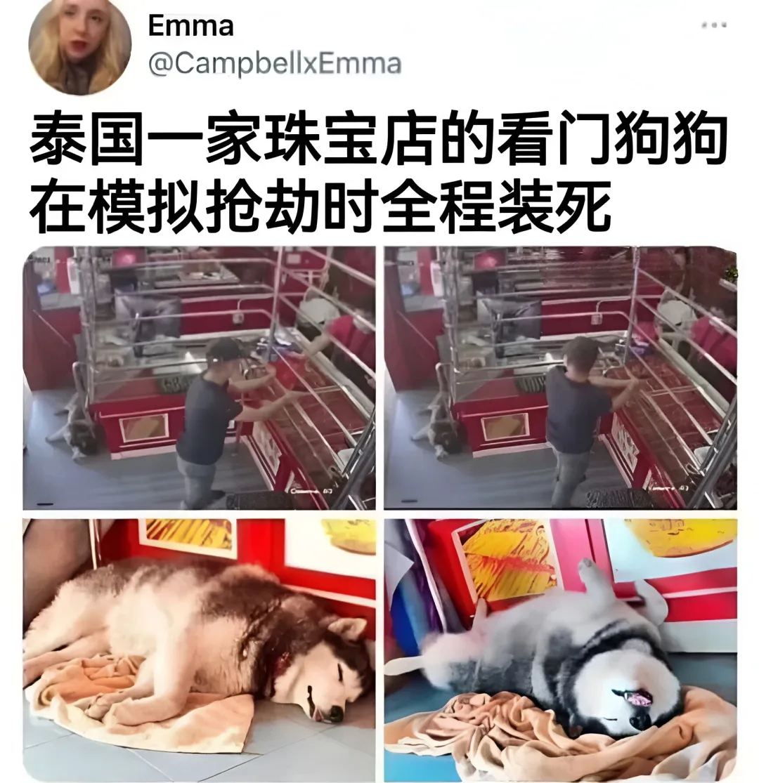 泰国一家珠宝店的看门狗狗在模拟抢劫时全程装死