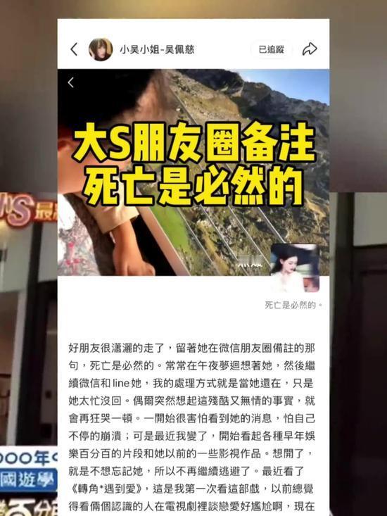 大S朋友圈备注“死亡是必然的”,这简短话语透着对生命的豁达。人生终有终点,她却以如此坦然态度面对。大家对生死观有怎样的思考呢?是像大S这般洒脱,还是有其他感悟?快来评论区分享,一起探讨这深刻话题。大S追思 大s人生 谢幕