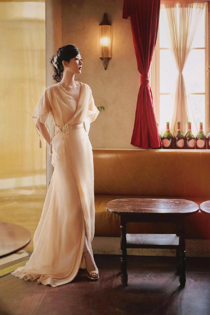 好一位温婉佳人登场,身着一袭Julien Fournié 2023春夏高级礼服,搭配 Pomellato珠宝,裸色长裙的腰间精致盘扣特别吸睛,温婉气质十足
