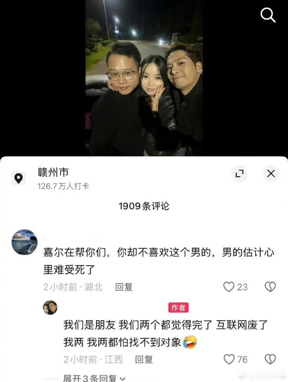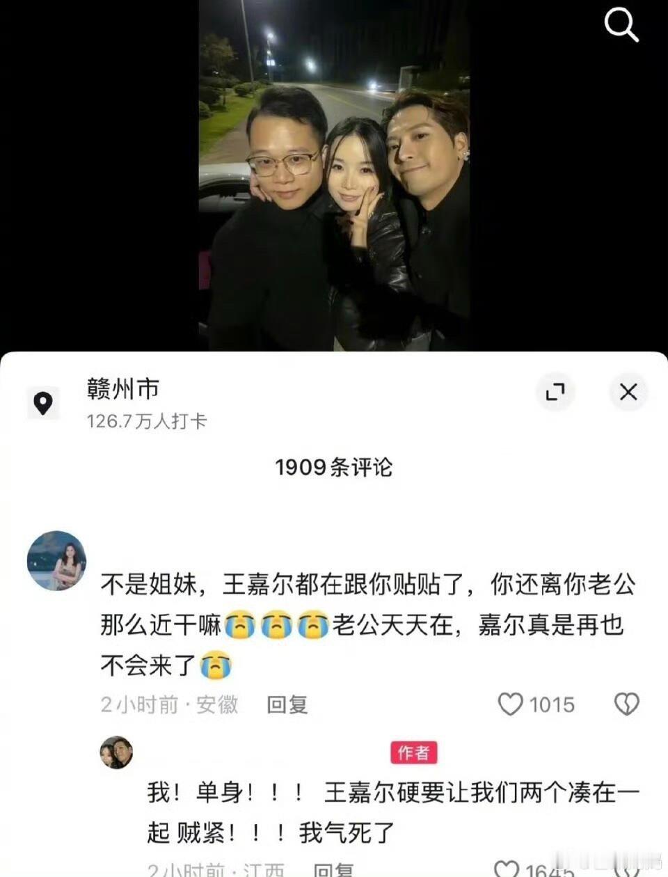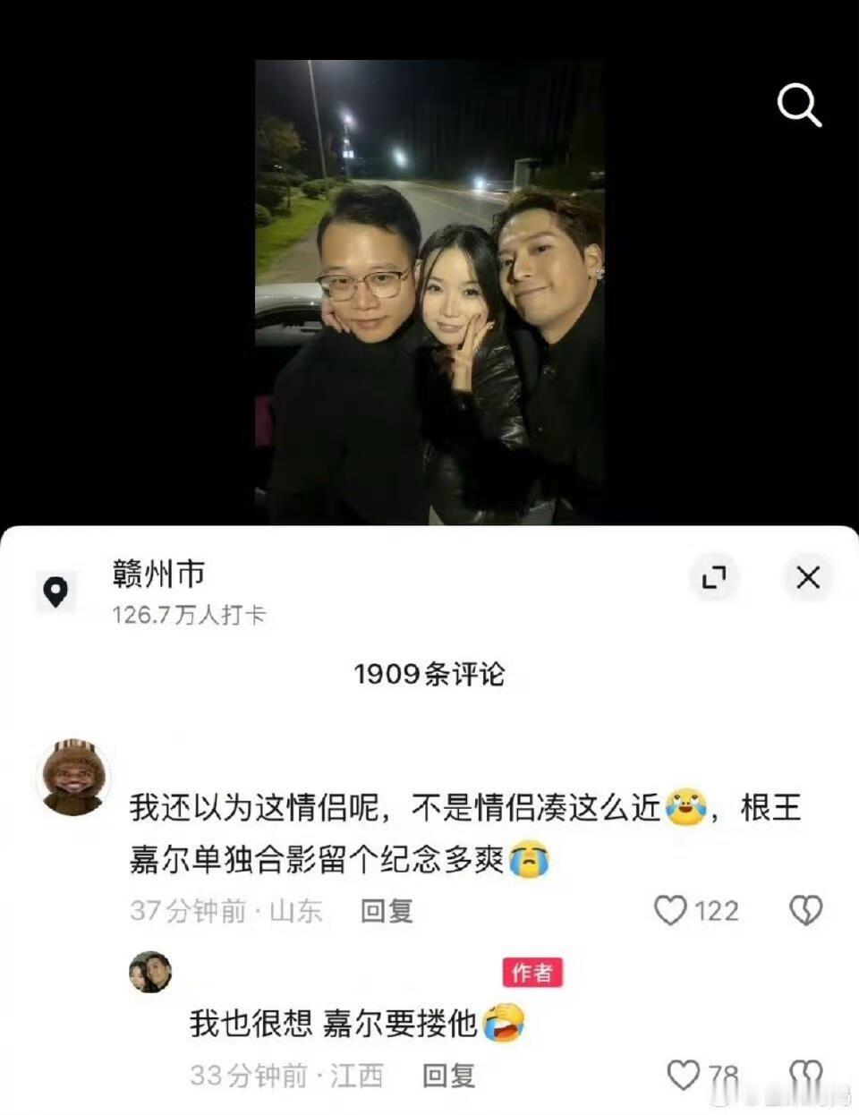 哈哈哈哈哈哈真不愧是内娱著名热心市民王嘉尔,一直致力于撮合每一位单身人士是吧!一见面就问粉丝旁边的男性朋友是不是她老公,和粉丝贴贴合照又把粉丝和朋友搂的贼紧现在粉丝晒出来合照后大家都以为旁边是粉丝男朋友了!哈哈哈哈哈哈哈哈王嘉尔这盛世真的如你所愿了🤣