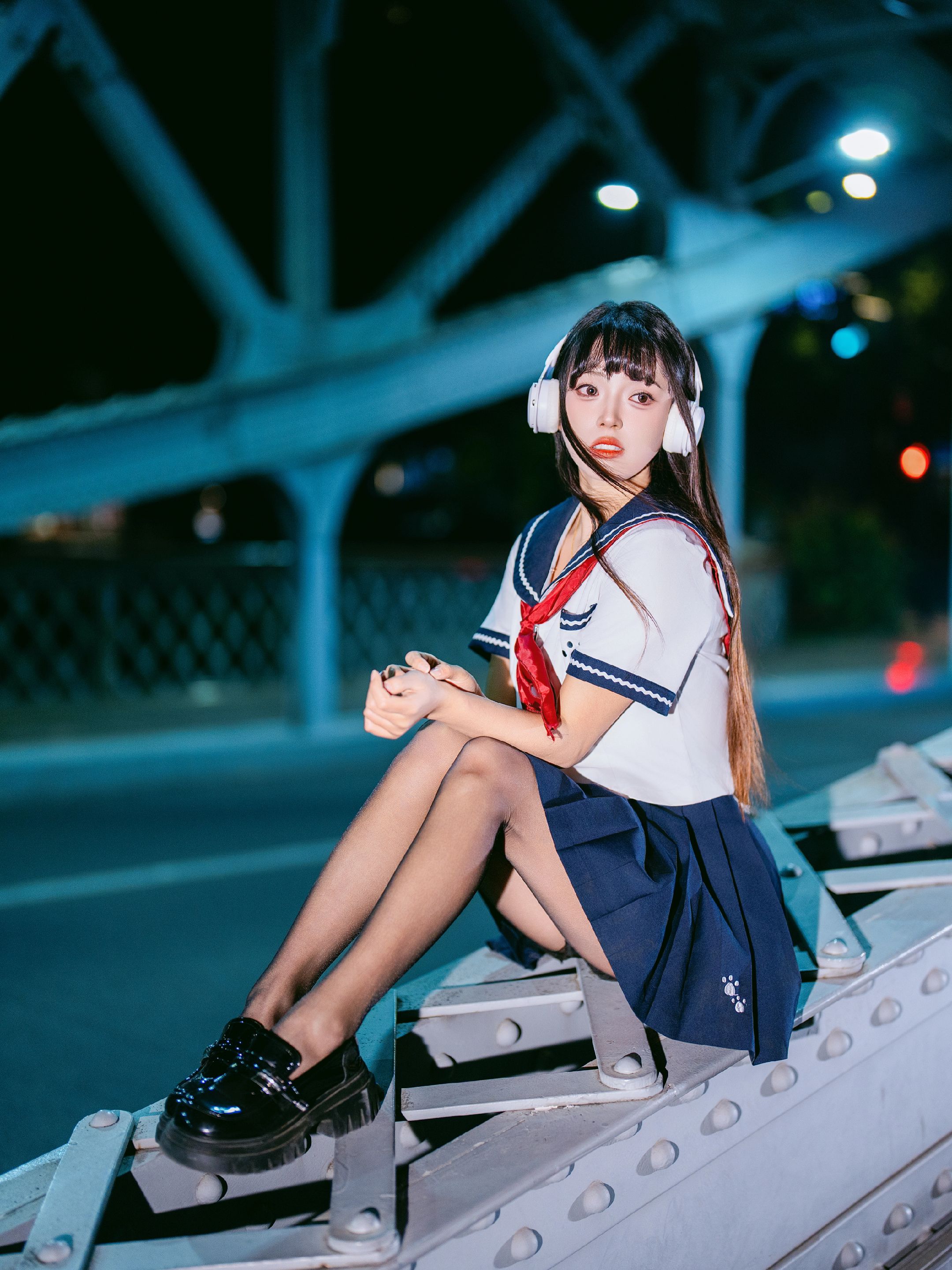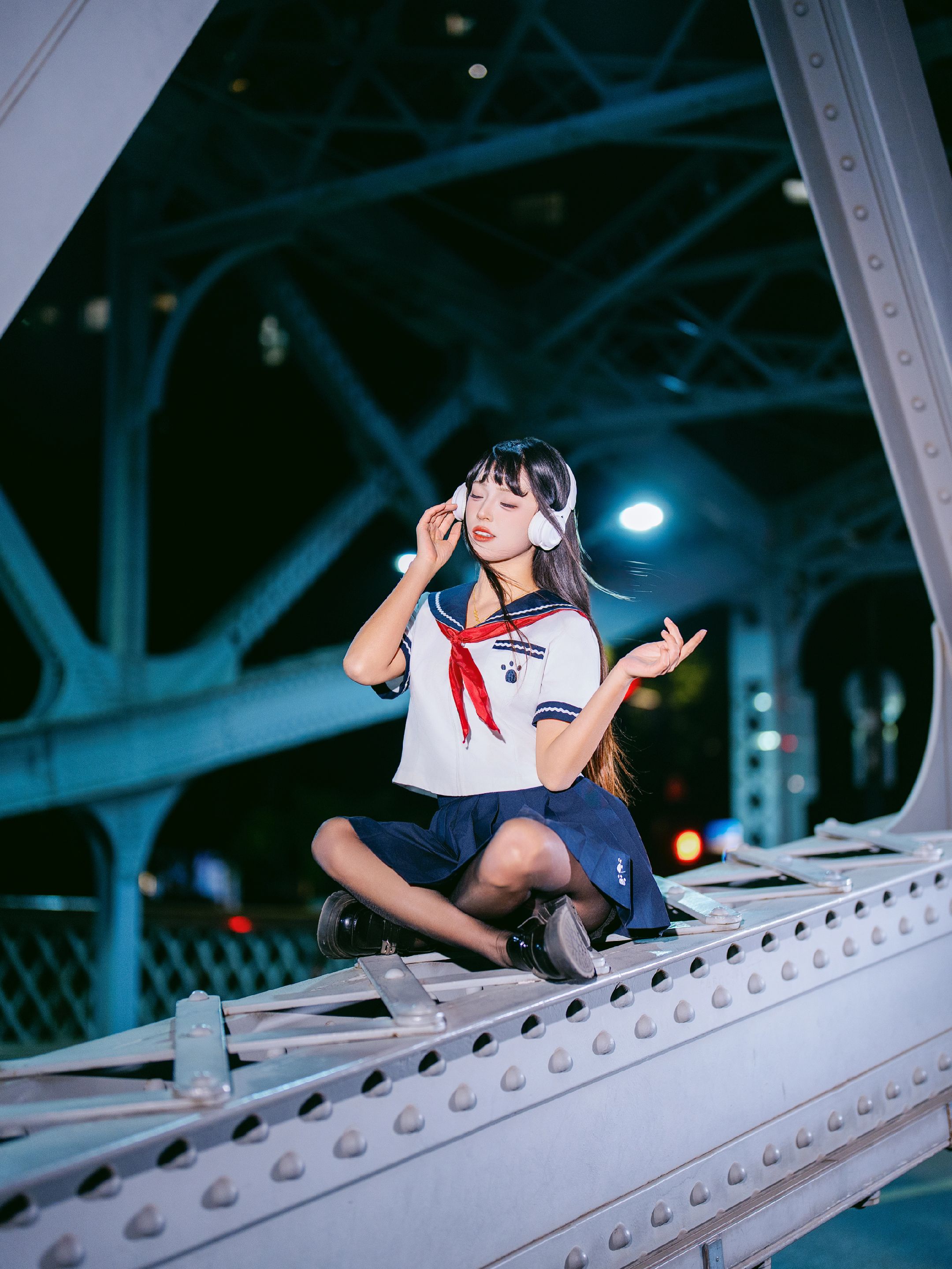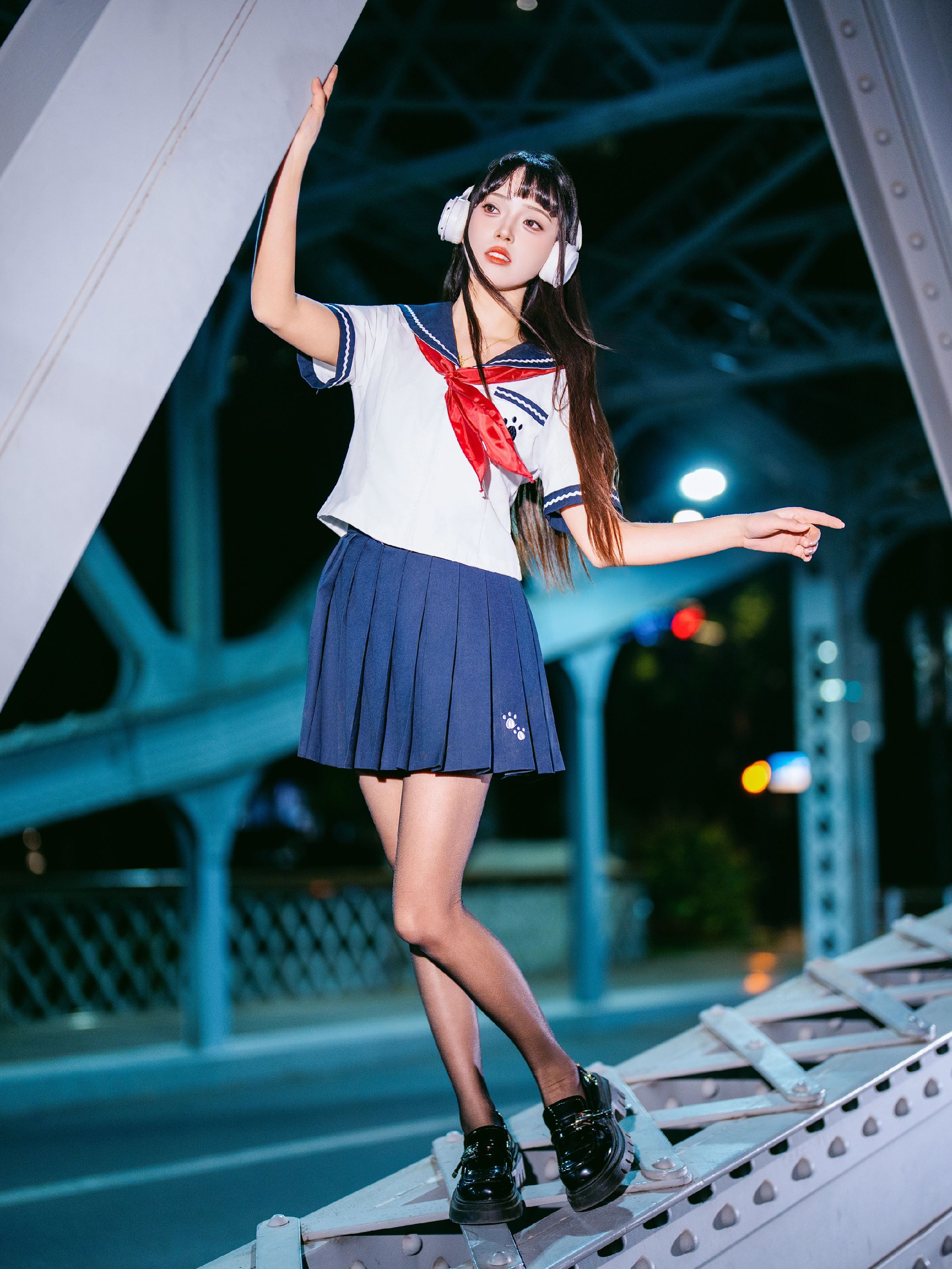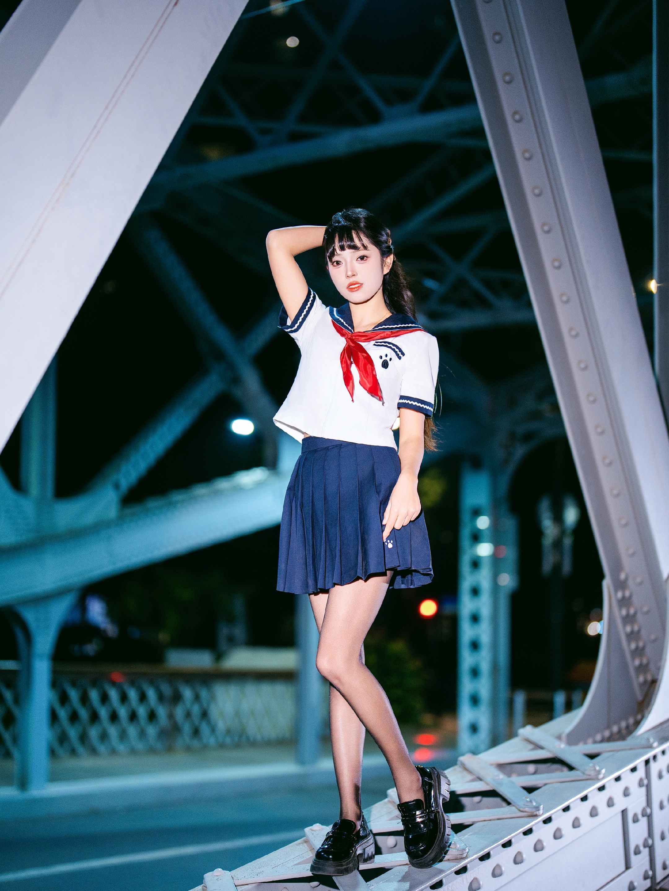 夜拍浙江路桥JK大片|在百年钢桥上邂逅流光 jk穿搭 jk制服 jk制服女孩 Jk 美女