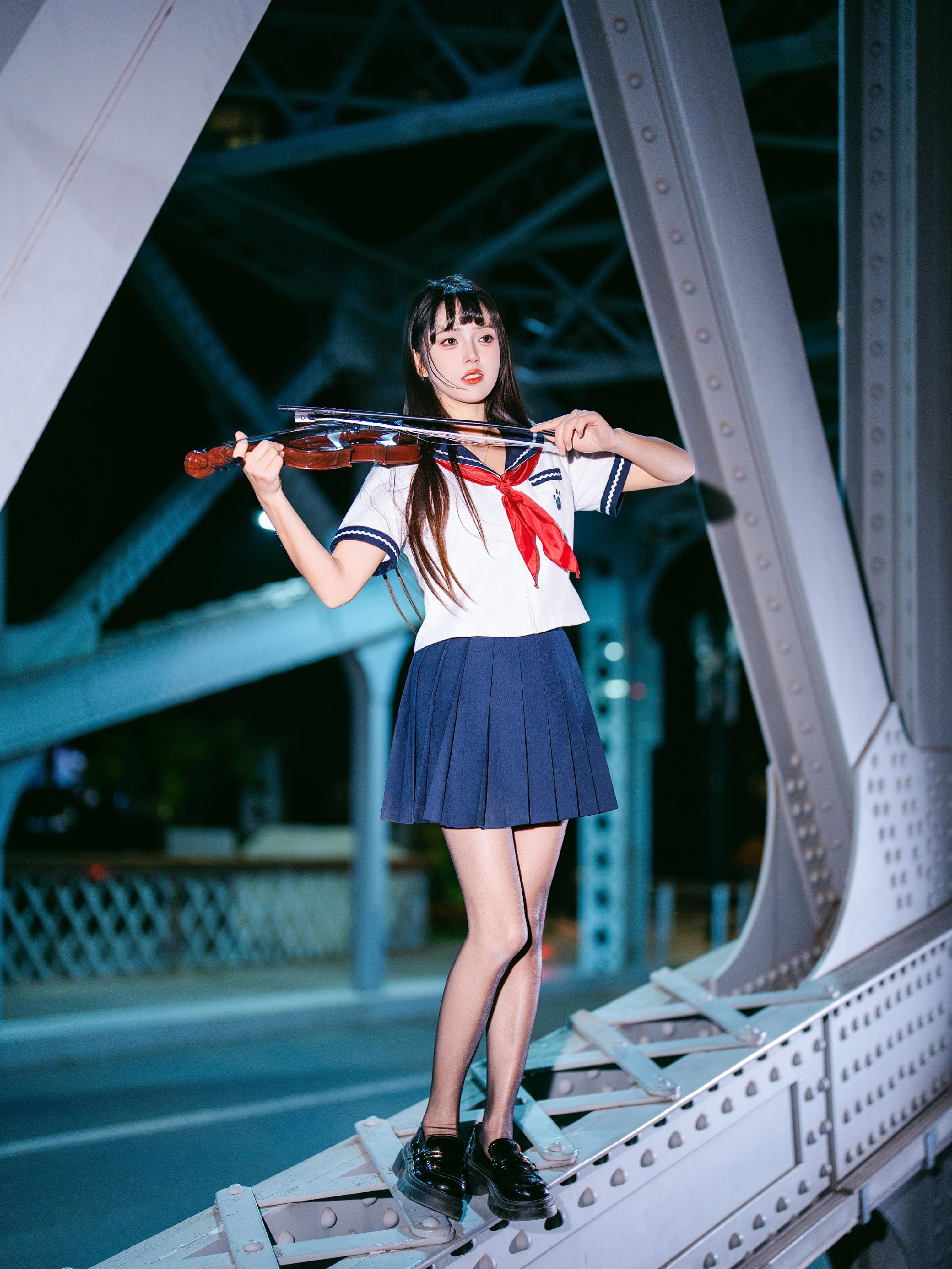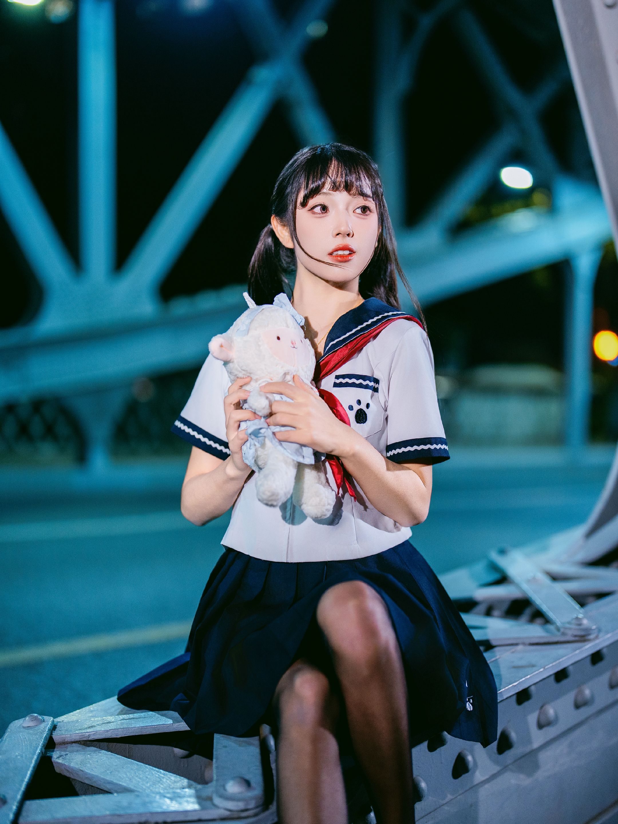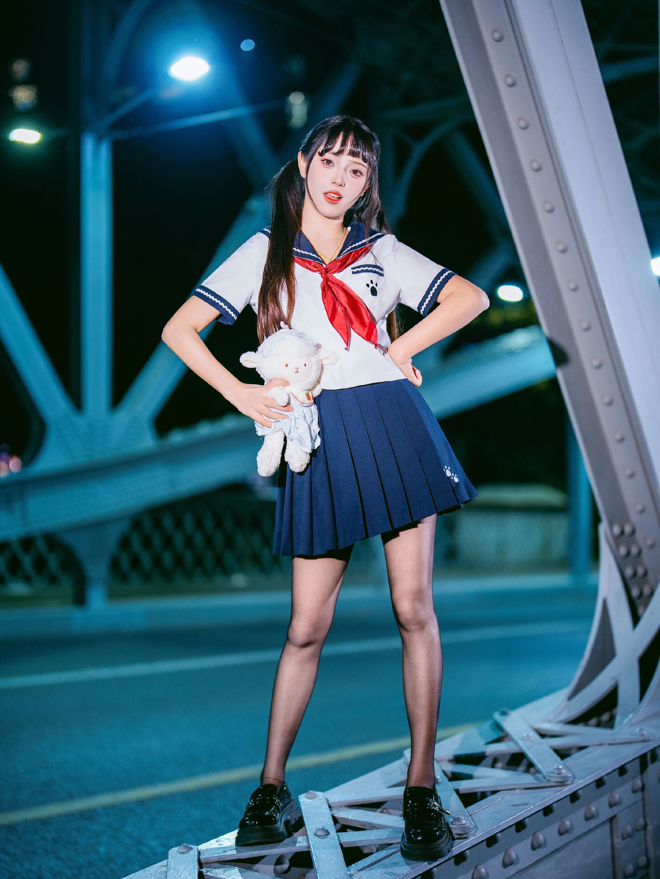 夜拍浙江路桥JK大片|在百年钢桥上邂逅流光 jk穿搭 jk制服 jk制服女孩 Jk 美女
