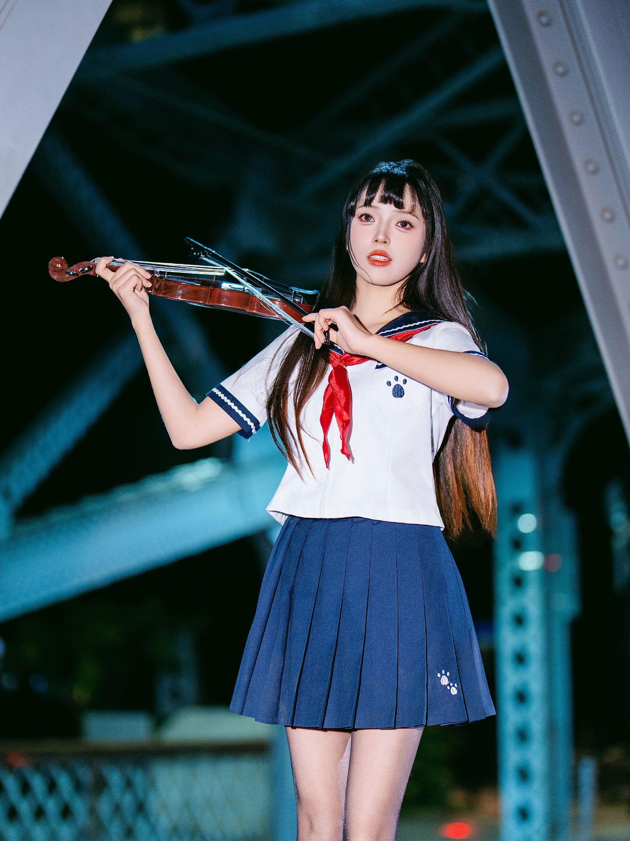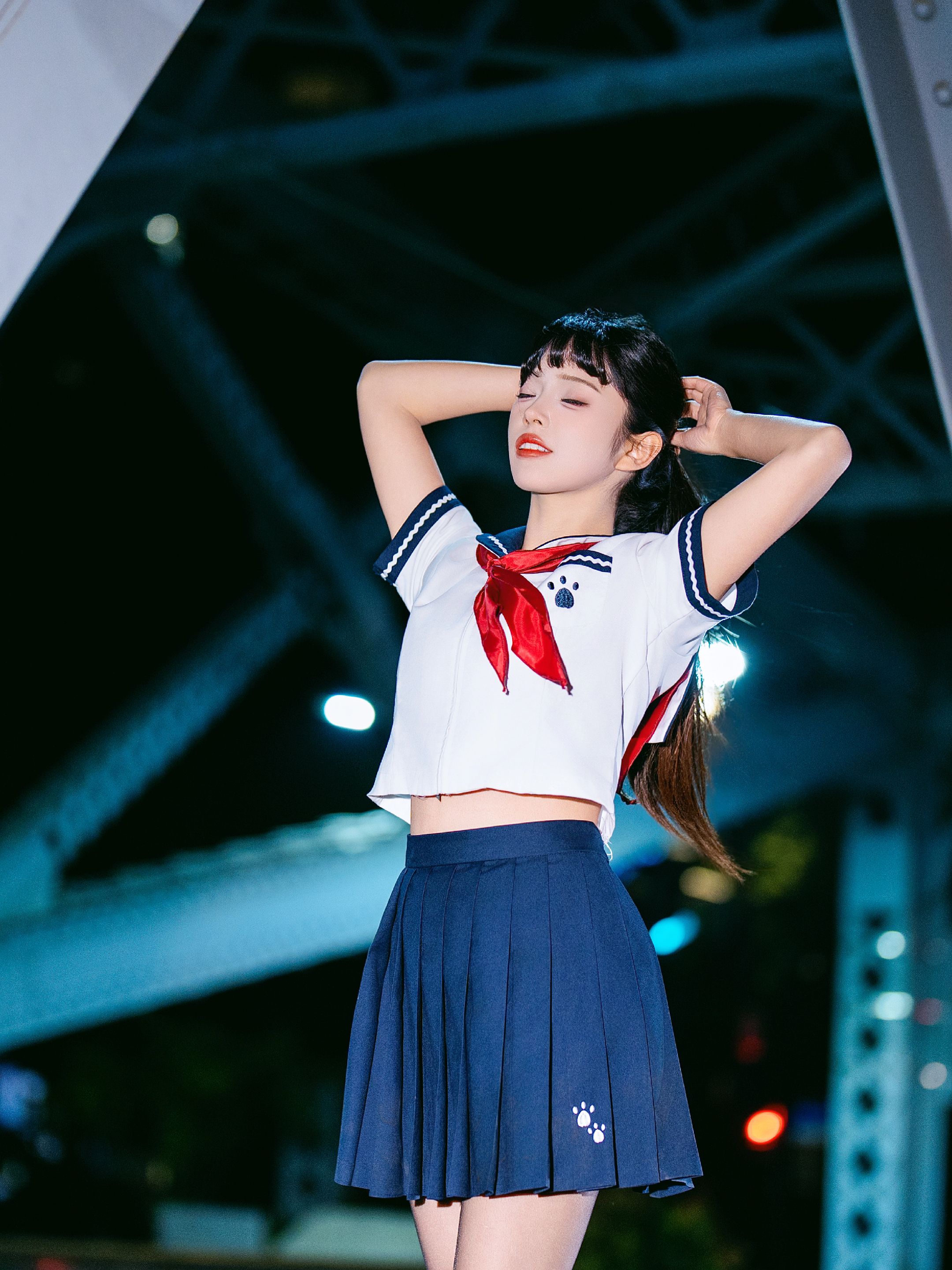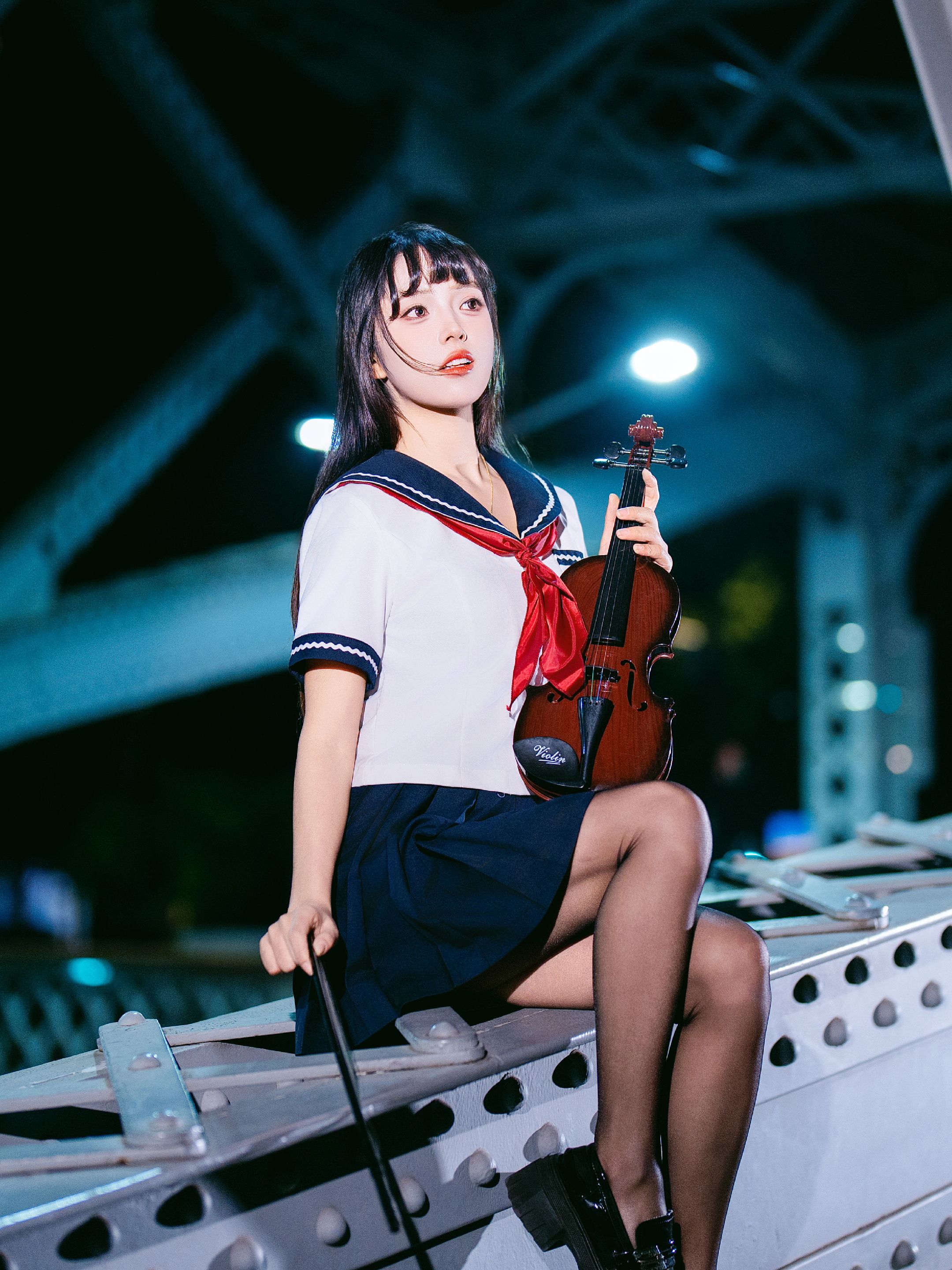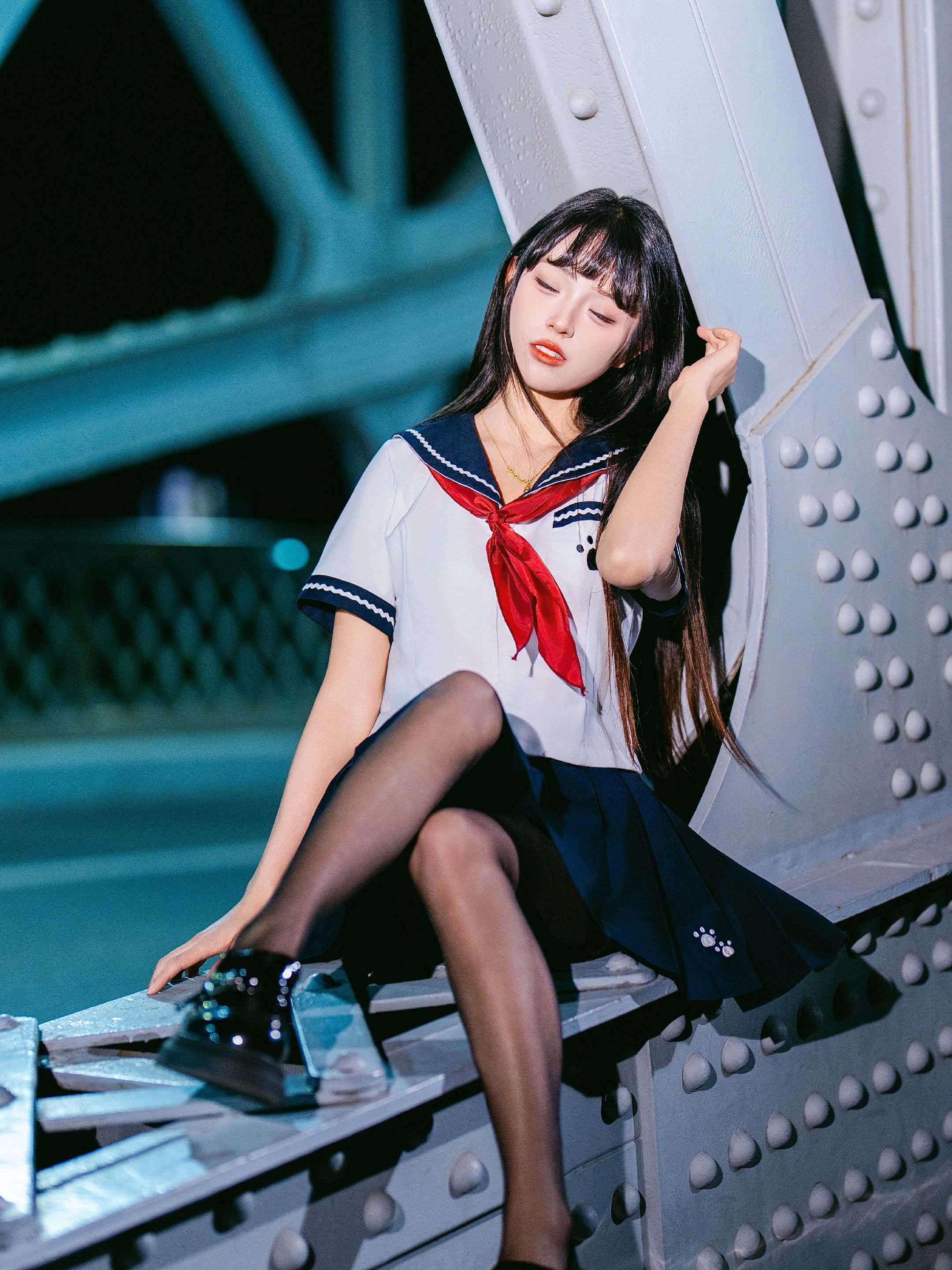 夜拍浙江路桥JK大片|在百年钢桥上邂逅流光 jk穿搭 jk制服 jk制服女孩 Jk 美女