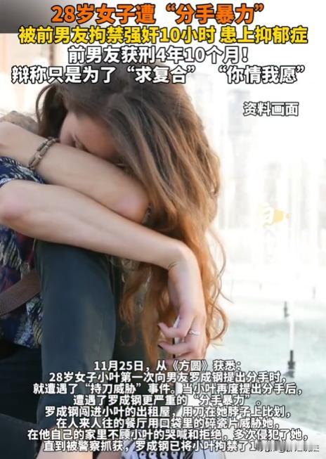 浙江湖州,女子小叶提出分手后,男友罗某为求复合,先是情绪失控拿刀威胁小叶打消分手念头,小叶再次提分手,罗某强行闯入其出租屋,持刀威胁,又带她去餐厅用碎瓷片威胁,之后非法拘禁小叶10小时,期间多次强迫她发生关系,罗某被捕后毫无悔意,称是你情我愿。检方调查发现罗某行为恶劣,以强奸罪、非法拘禁罪、非法侵入住宅罪对其提起公诉,建议从重量刑。 小叶和罗某曾是情侣,相处后小叶觉得不合适,第一次提分手,罗某情绪失控拿刀威胁她打消念头,小叶只能暂时搁置。 小叶本以为那次之后罗某能冷静,可噩梦才刚开始,没几天小叶再次提分手,罗某瞬间暴怒,像失控野兽冲向小叶出租屋。 当时小叶在屋里收拾,听到脚步声还没反应过来,门就被踹开,罗某拿刀架在她脖子上,恶狠狠说不分手就杀了她,还拖着小叶去餐厅。 到了餐厅,罗某掏出碎瓷片威胁划花小叶脸,小叶哀求,罗某却冷笑。 吃完宵夜,罗某强行把小叶带回住处,反锁门,推倒在床,说别想走。 小叶挣扎哭喊,罗某强行与她发生关系,10个小时里多次强迫,小叶拒绝就遭更粗暴对待。 小叶趁机给朋友发求救信息,朋友帮忙报了警。 民警迅速找到住处,破门而入,罗某先愣后反抗,被民警制服。 押解路上,罗某还嘴硬说两人你情我愿。 到了警局,经审讯认为罗某非法侵入住宅、非法拘禁、多次强迫发生关系构成犯罪,罗某却梗着脖子说太爱小叶想复合不算犯罪。 罗某还口口声声说爱,可他的行为,真的是爱吗? 爱一个人就能无视法律,随意伤害对方吗? 检方介入调查,收集大量证据,发现罗某行为恶劣,给小叶造成身体和心理双重创伤。 检方认为:罗某构成强奸罪、非法拘禁罪、非法侵入住宅罪,毫无悔意,态度恶劣,应从重量刑。 罗某的辩护律师辩解称:罗某因感情受挫一时冲动,主观无恶意,希望从轻处罚。 小叶坐在原告席,听着辩论,哭着说这段感情只有痛苦恐惧,希望公正判决。 罗某在小叶明确拒绝分手后,拿刀威胁,强行与小叶发生关系,且在10个小时内多次强迫,这完全符合强奸罪中以暴力胁迫手段强行与妇女发生性行为的规定。 罗某用刀架脖子、碎瓷片威胁,这些暴力胁迫行为让小叶不敢反抗,不得不屈从,所以罗某构成强奸罪是毫无疑问的。 刑法第二百三十八条规定,非法拘禁他人或者以其他方法非法剥夺他人人身自由的,处三年以下有期徒刑、拘役、管制或者剥夺政治权利。 罗某强行把小叶带回住处,反锁门,不让小叶离开,限制了小叶的人身自由,时间长达10个小时,这符合非法拘禁罪的范畴。 刑法第二百四十五条规定,非法搜查他人身体、住宅,或者非法侵入他人住宅的,处三年以下有期徒刑或者拘役。 罗某未经小叶允许,强行闯入小叶出租屋,这属于非法侵入他人住宅的行为,侵犯了小叶的住宅安宁权,构成非法侵入住宅罪。 罗某的辩护律师说罗某主观无恶意,可从法律角度看,不管主观想法如何,只要实施了犯罪行为,就要承担法律后果。 罗某的行为,不是简单的感情纠纷,而是严重侵犯他人合法权益的犯罪行为,不能因为所谓感情因素就减轻处罚。 最终,经法院审理后,数罪并罚,判处罗某有期徒刑四年十个月。 在现实中,像这样以爱之名实施伤害的行为并不少见,有些人打着爱的旗号,却做着伤害对方的事,这是对爱的扭曲。 真正的爱应该是尊重、理解和包容,而不是占有和控制,当感情出现问题时,应该通过合理合法的方式解决,而不是采取极端手段。 感情不是犯罪的挡箭牌,任何人都不能以爱之名去伤害他人,在面对感情问题时,要保持理智,遵守法律,用正确的方式处理。