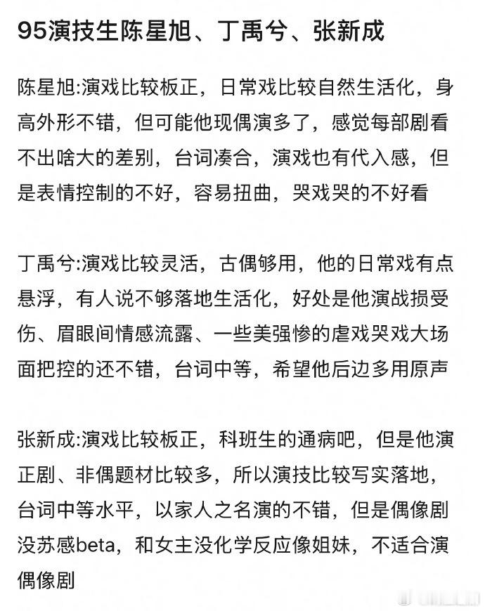 投稿:95演技生陈星旭、丁禹兮、张新成大家认可吗?