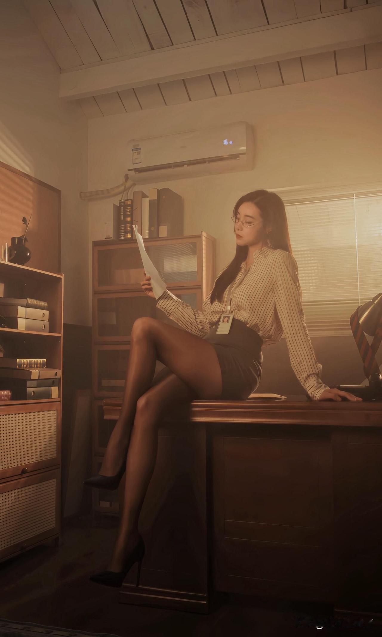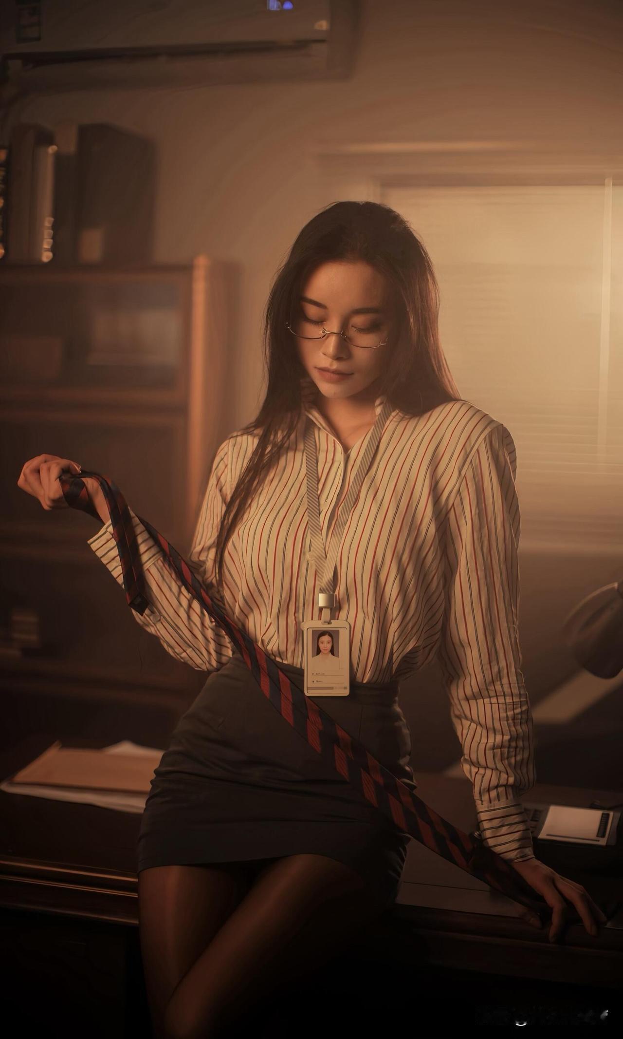 条纹衬衫裹着纤细的腰肢,像被暖光晕开的旧信笺,在朦胧的雾霭里漾开。黑丝顺着腿弯滑落,与短裙的弧度撞出一抹灵动的清韵。 我倚在桌沿,眼镜后的目光藏着未说出口的故事。这不是刻意的展示,而是独属于我的私密时刻。暖光轻摇,衬衫的纹路、雾霭的朦胧,都成了这方空间里最迷人的细节。 在这一方朦胧空间里,温柔与神秘交织,成了时光里最动人的风景。 气质波点衬衫