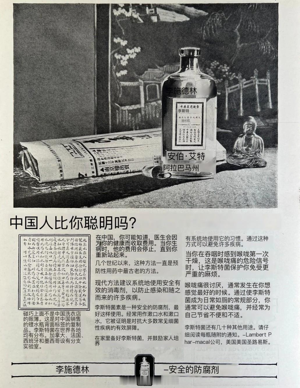1924Listerine李施德林漱口水的广告《中国人比你聪明么?》