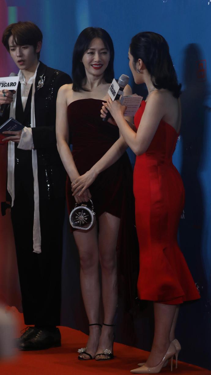 果然不愧是老牌女王!穿着高跟鞋居然还垫着脚接受采访,秦岚能够长红这么多年也是有原因的,女明星太不容易了