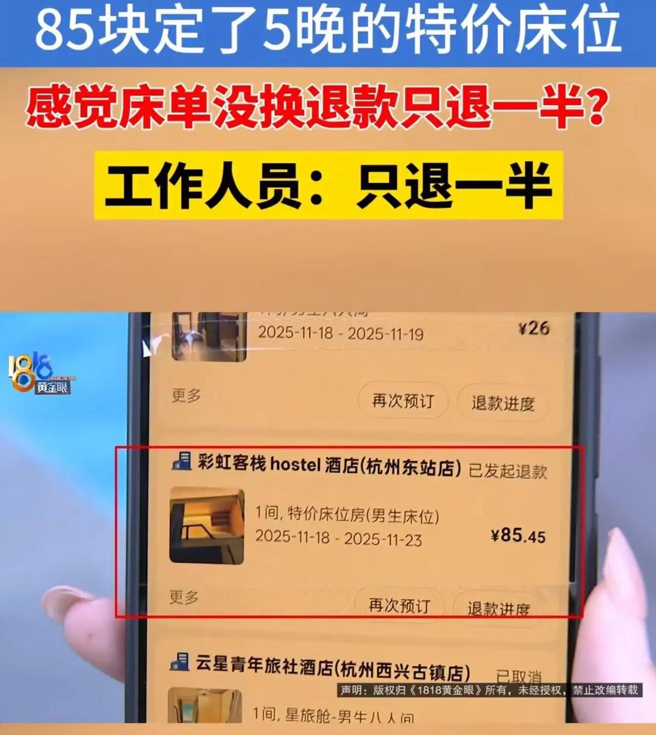 “男子为42块求助电视台,背后故事着实心酸!”浙江杭州,一名男子花85元预订了5晚的特价床位。到房间后,他发现床单是别人睡过且未更换的,便想退房。然而,商家仅退还他一半的钱。男子不满道:“我都没入住,凭啥只退我一半?”网友调侃:“上1818黄金眼节目,既不戴墨镜也不戴口罩,那肯定是有理有据!” 这则事件暴露出消费者权益保护和商家诚信方面的问题,引发网友热议。具体情况如下: 一名男子在浙江杭州花85元预订了5晚特价床位。 到房间后,他因床单未换而不满,打算退房。 商家仅退还一半费用,男子认为自己未入住,应全额退款。 有人打趣,在“1818黄金眼”节目里,不戴墨镜、不戴口罩出镜,那诉求必定合理,暗示男子诉求合理。 也有人指出,商家应尊重消费者权益,合理处理退订,避免因诚信问题引发信任危机。 这起事件警示商家要严格履行服务承诺,保障卫生和服务质量。 消费者遇到类似问题,要保存好证据,合理维权。 公众也需理性看待事件,理解双方权益与责任。