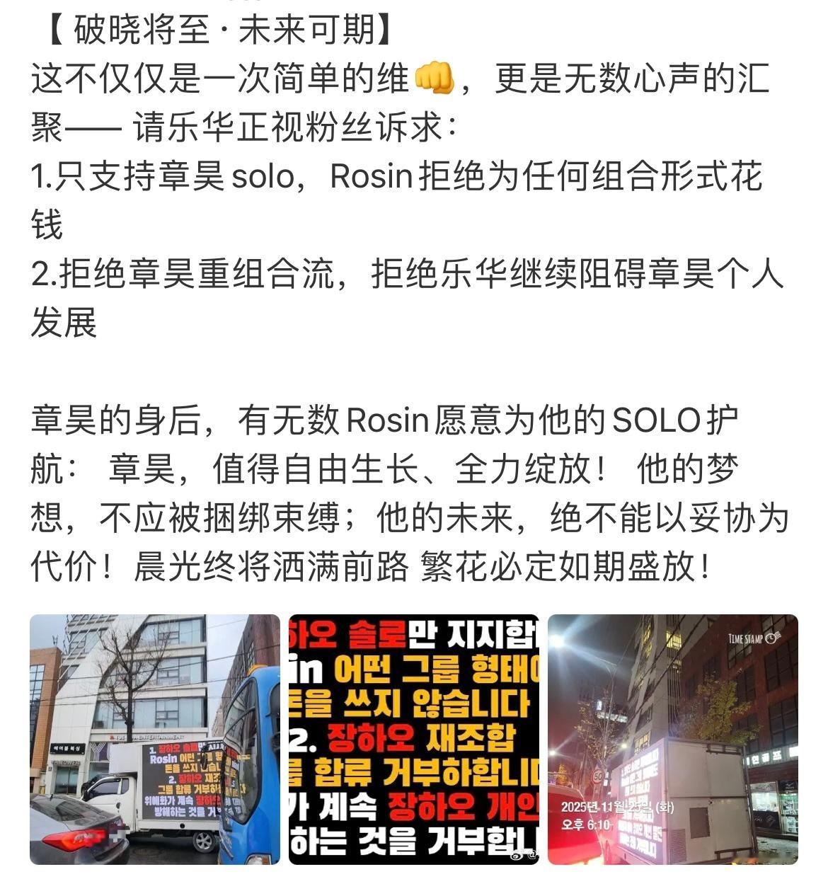 章昊粉丝今日卡车维权要求章昊solo出道,不接受重组