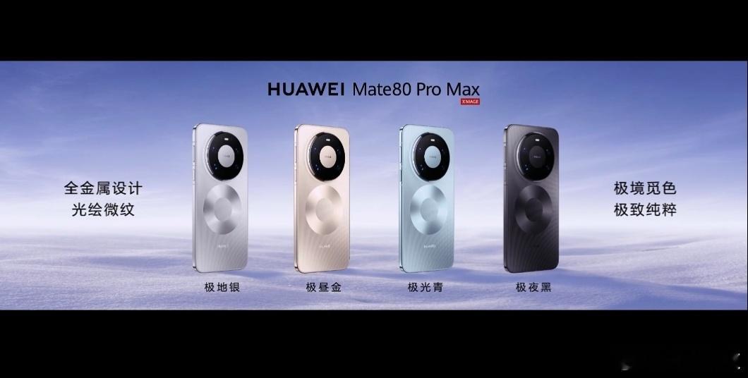 华为Mate 80系列这次带来了三款型号设计上全系采用了2.5D直屏,后盖采用了双环设计、中轴对称,好看又匹配Mate 80的名称!!后盖采用了锦纤材质,前面板采用了第二代昆仑玻璃,抗摔能力是普通玻璃的20倍,配合超坚韧玄武架构,抗弯折能力也是提升了20%。配色灵感源自于极地,带来了四款基地配色:极地银、极地金、极地青、极地黑,你们喜欢哪个配色??