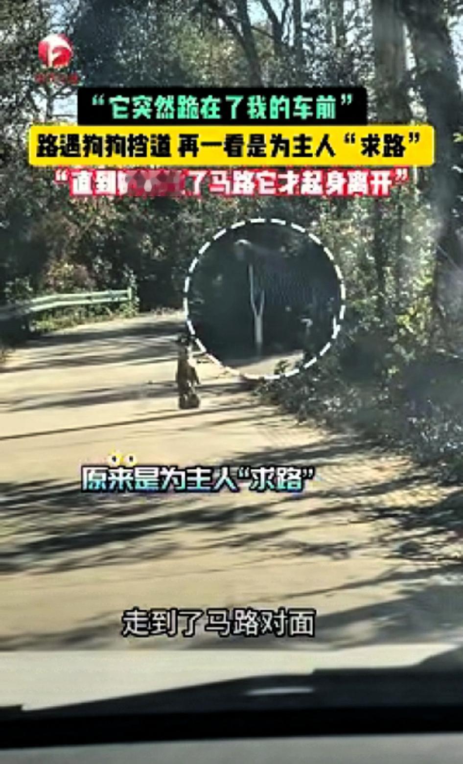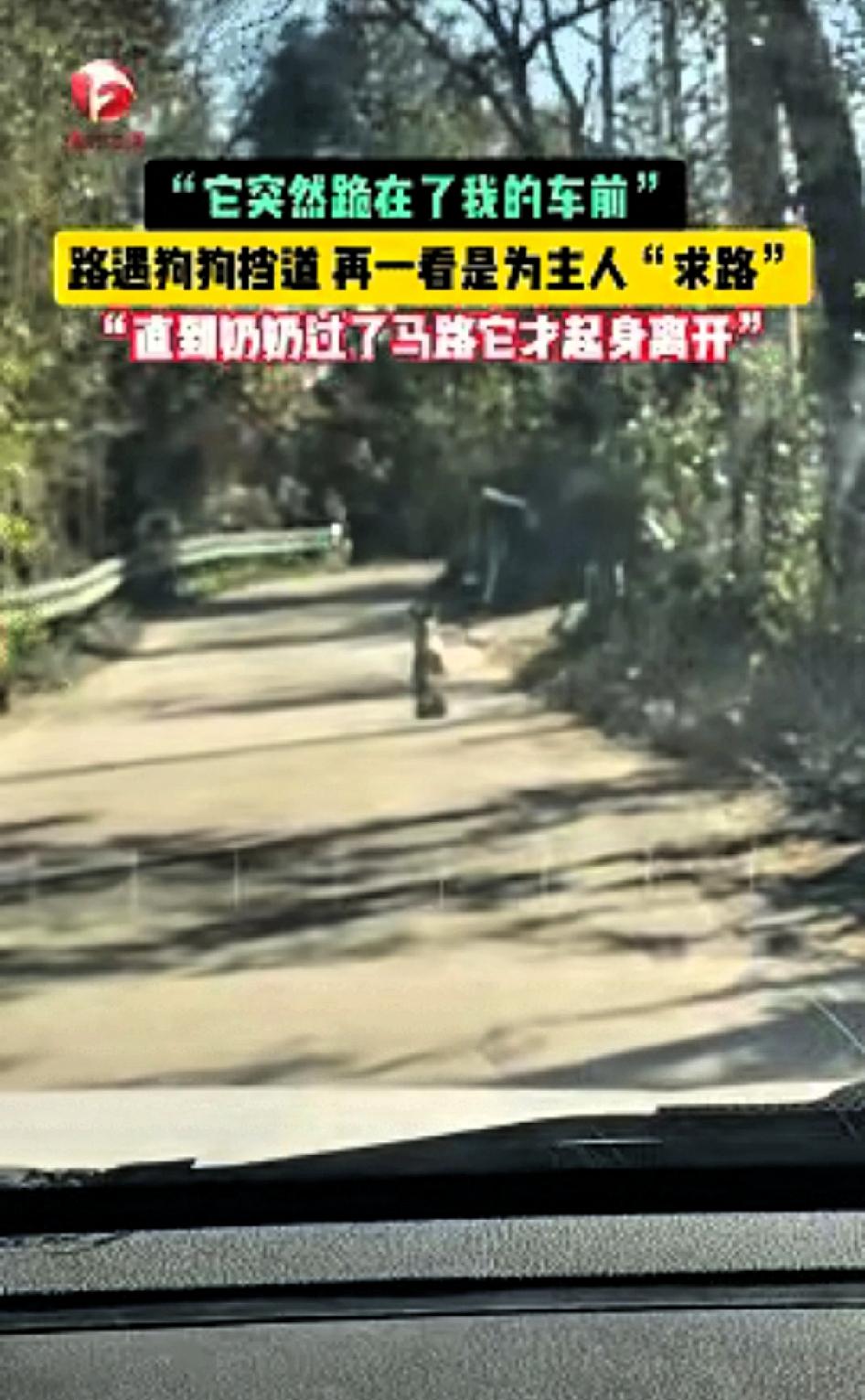 科学也解释不清了!近日安徽广德,女子跟老公开车回家时在路上遇见了一只双腿站立行走的狗,女子刚打开手机要录像,那狗突然朝着车头方向,“噗通”一下跪了下来。 女司机当时愣了,没敢继续开,她老公也纳闷,俩人就停在那儿看着。过了几秒,从狗狗身后的土路那边,慢慢走出来一位拄着拐杖的老奶奶,脚步很慢,一步一步挪着,看样子是要横穿马路。 夫妻俩这才明白过来,狗狗不是在搞怪。它应该是知道老奶奶腿脚不好,过马路慢,怕车子没注意碰到主人,才特意挡在前面,用下跪的方式,让他们停下来等一等。 等老奶奶稳稳当当走到路对面,狗狗立刻站起来,小跑着跟上去,乖乖贴在老奶奶身边,一起往家的方向走。 后来女的把这段经过分享到网上,评论区里好多人说“万物皆有灵”,也有人讲“狗是通人性的”。其实哪有那么多玄乎的说法,就是这只狗把主人放在了心上。 它不懂什么大道理,也没人教过它该怎么“拦车”,可它知道主人有危险,就凭着本能去护着,哪怕自己站在车前,也没半点退缩。 我们总说“人性”,可有时候,比起成年人世界里的权衡和计较,狗狗的这份忠诚反而更简单、更实在。你养它,给它一口饭吃,它就把你当成全部,愿意用尽全力护你周全。 这事儿哪是“科学解释不清”,不过是一份纯粹的守护,不需要复杂的理由。