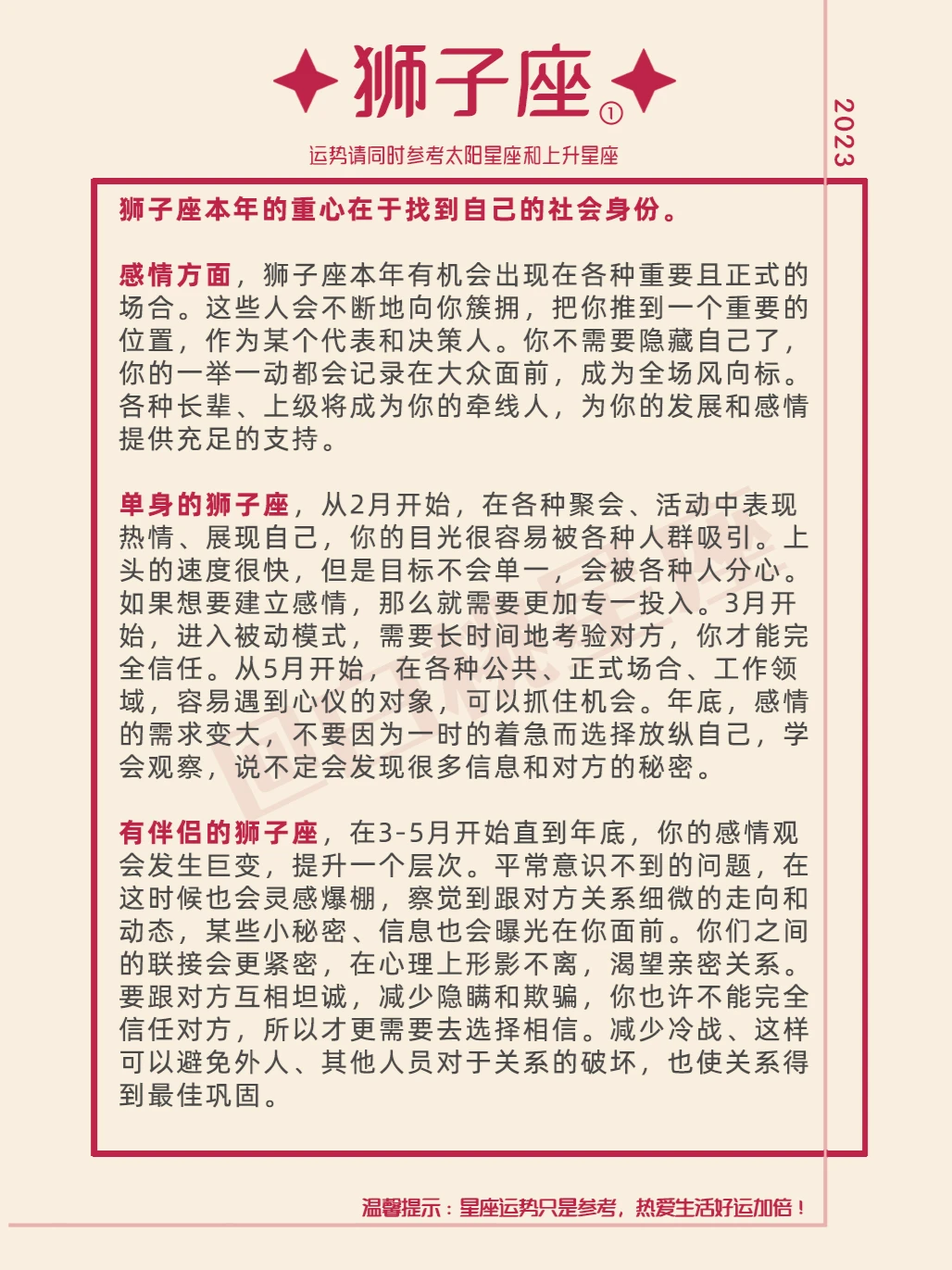 祝各位狮子座宝宝新年好运来,迎接美好2023!快来领取好运,许下你的新年愿望吧~