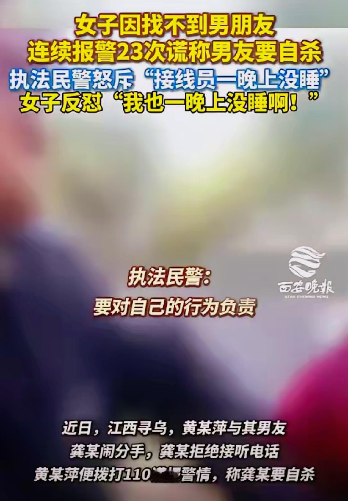 离谱!江西女子为逼男友见面,从凌晨1点到早上7点,连续23次打110,撒谎说男友要自杀、跳河之类的。 接警员一整晚没合眼,真实紧急警情都被耽误,而她却理直气壮怼民警“我也一晚上没睡啊”。最终,她因扰乱单位秩序被行政拘留,男友也更坚定了分手的决心。 咱就说,谈恋爱闹矛盾很正常,但也不能拿公共资源撒气啊!报假警是违法的,这种操作不仅解决不了感情问题,还把自己送进了局子,图啥呢? 你身边有这种“恋爱脑”到离谱的人吗?评论区说说你的见闻。