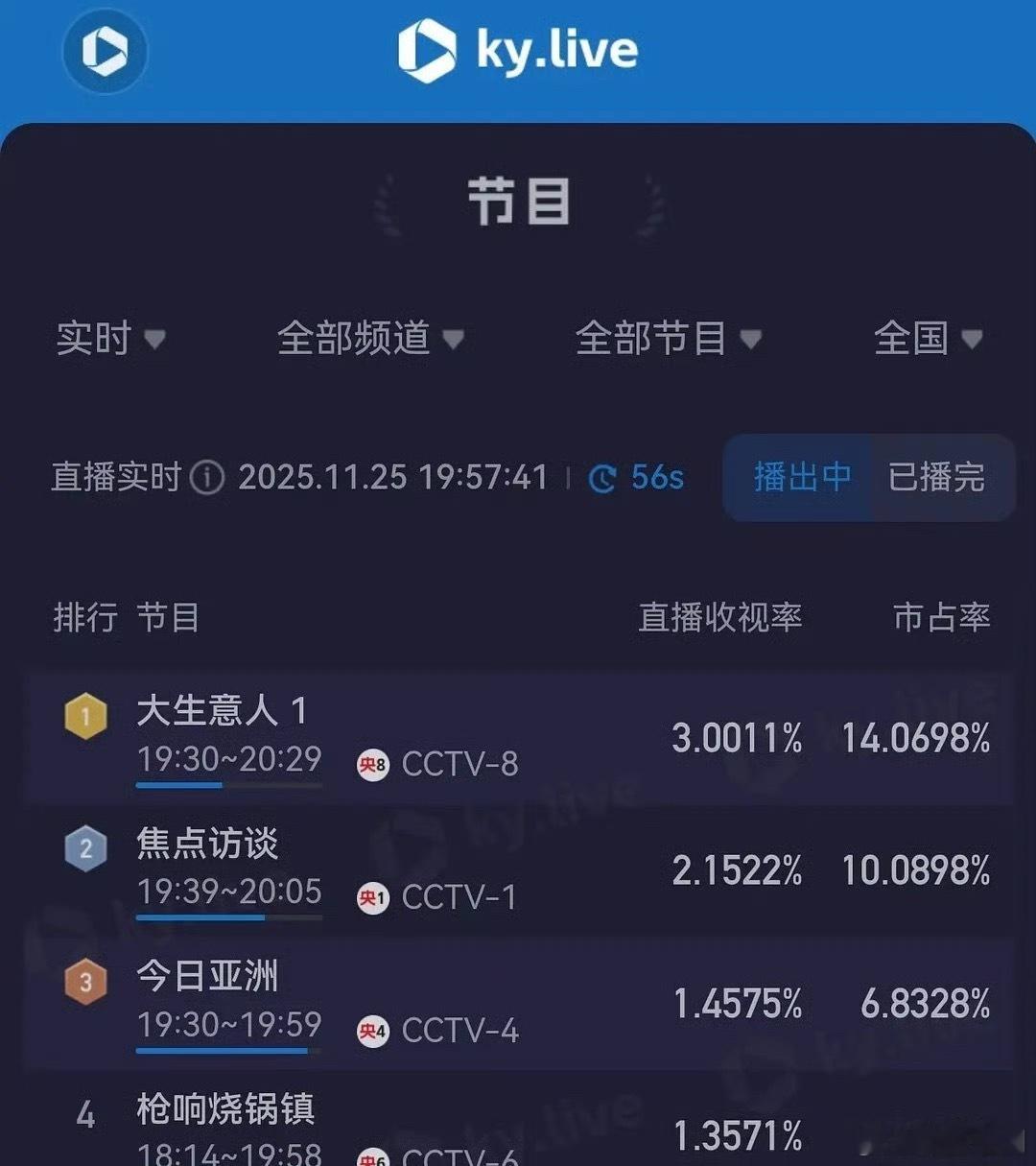 陈晓的剧,观众大盘在这里,所以说了今天观众都会来看《大生意人》,其他剧的最好时机已经没有了。