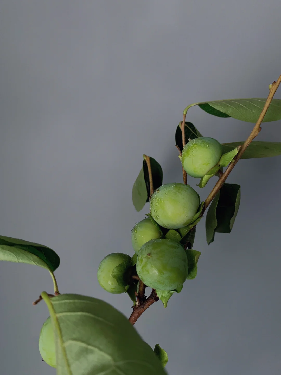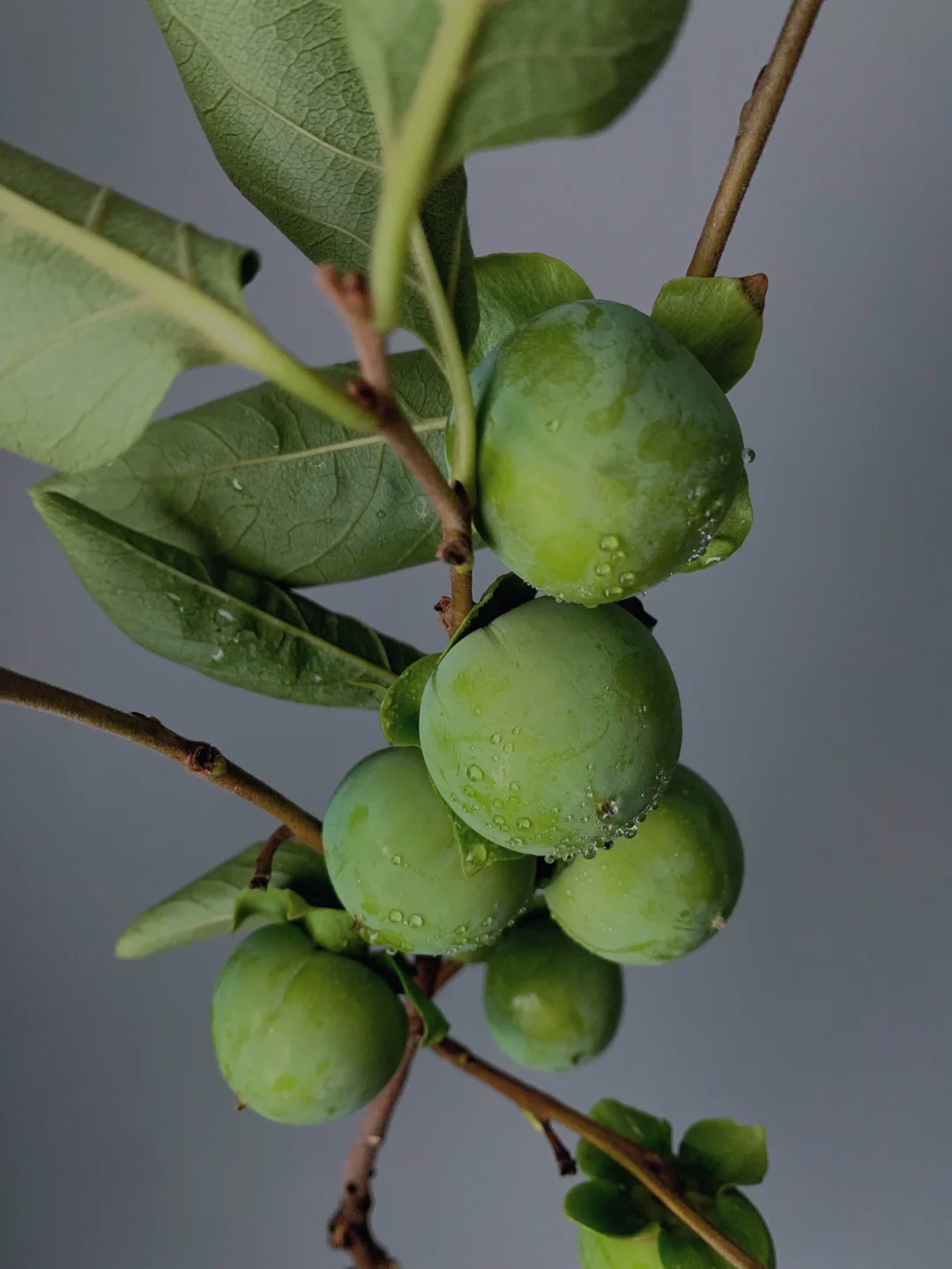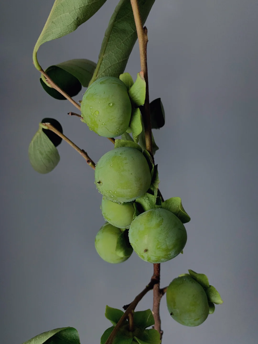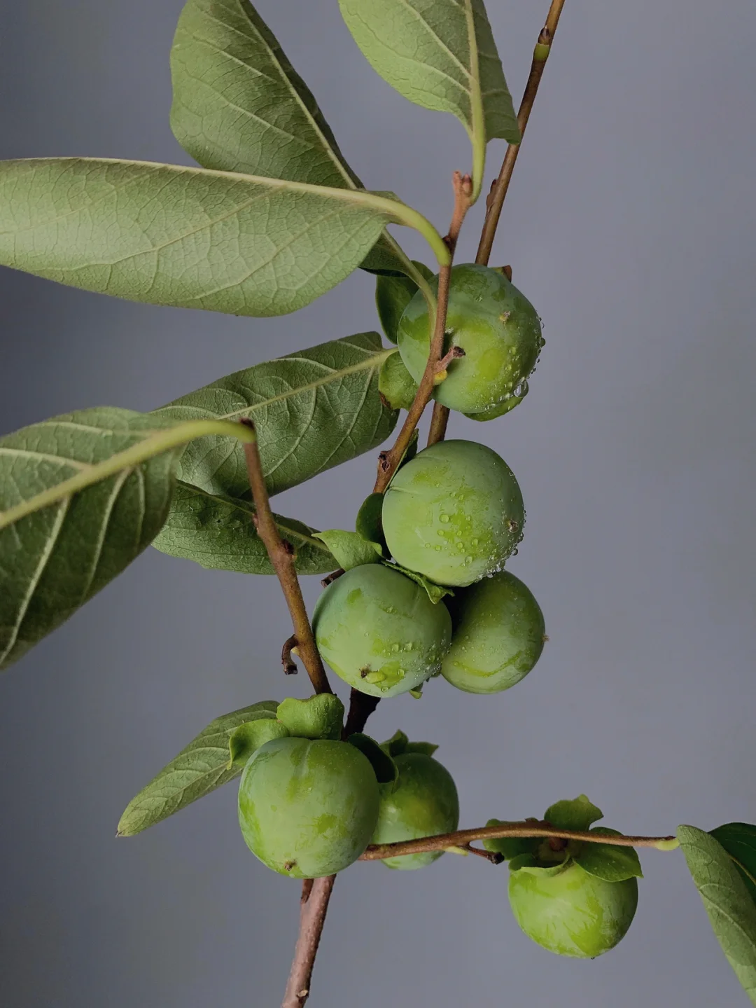 🟢🟢搭配:青柿可搭配新鲜叶材营造自然和谐的花束效果,也可去掉叶子只保留果实搭配团状花材比如大丽花、弗朗等做中上层材料;在插花中青柿可以作为出挑存在,让整个作品显得更加玲珑秀美,可爱动人。