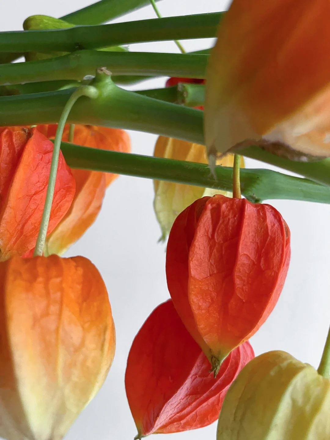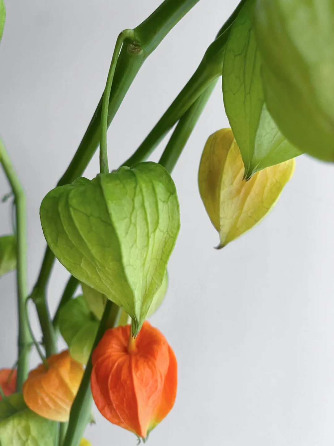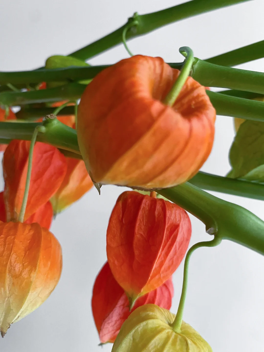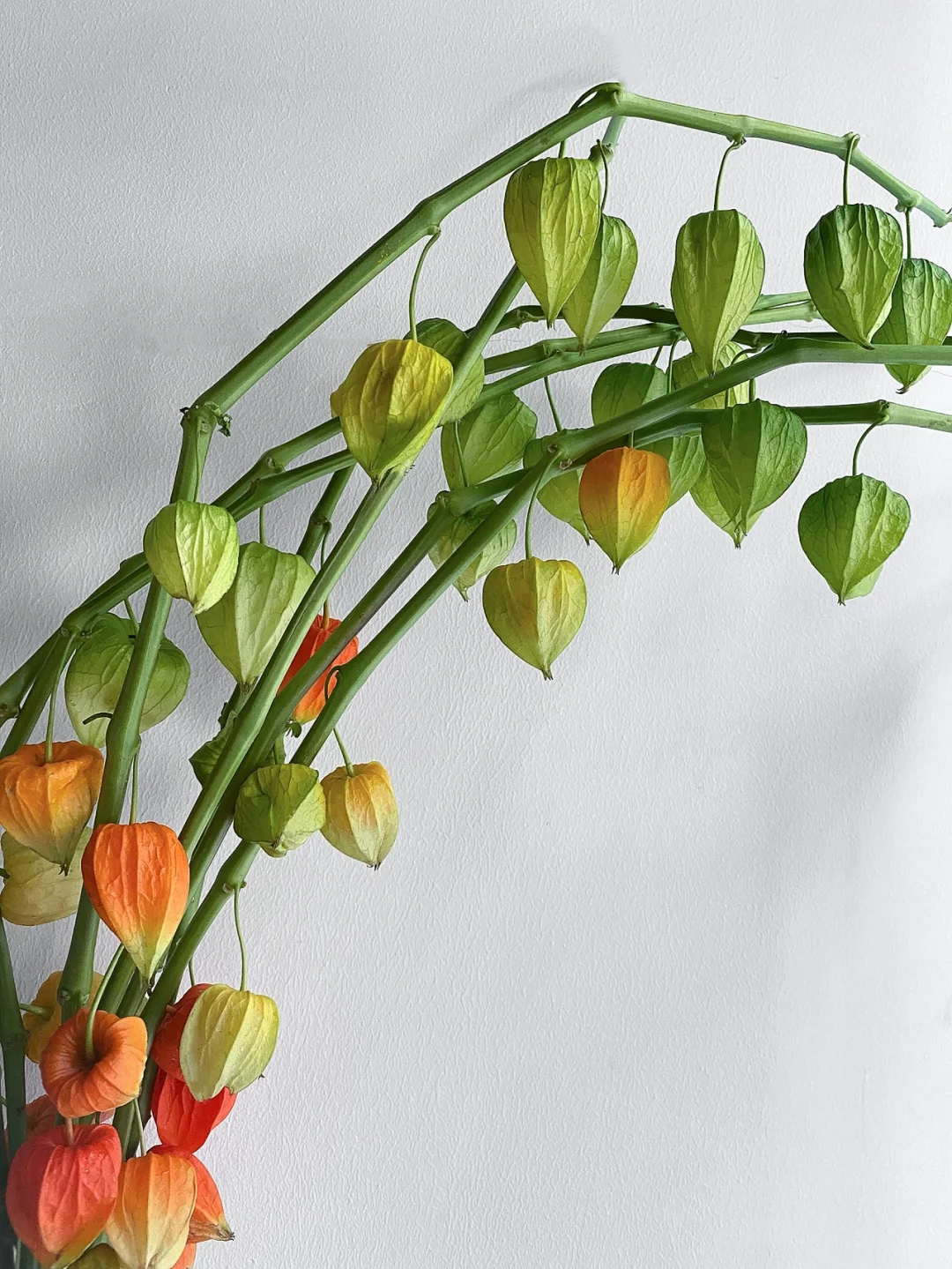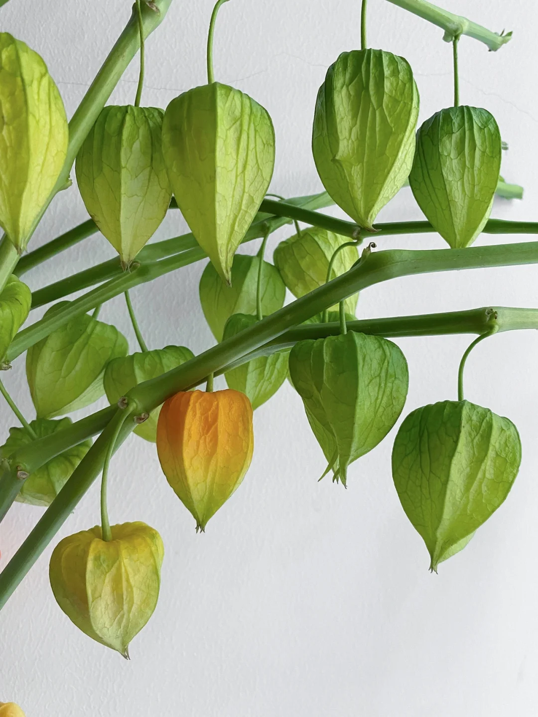 🟠🟠特点:酸浆果外形酷似灯笼,所以也被称为灯笼果,非常可爱。在初秋的时候上市,是应季的花材,从绿的慢慢过渡到橙红色的绝美渐变,充满了成熟和收获的氛围感,丝毫不会有萧瑟之气。