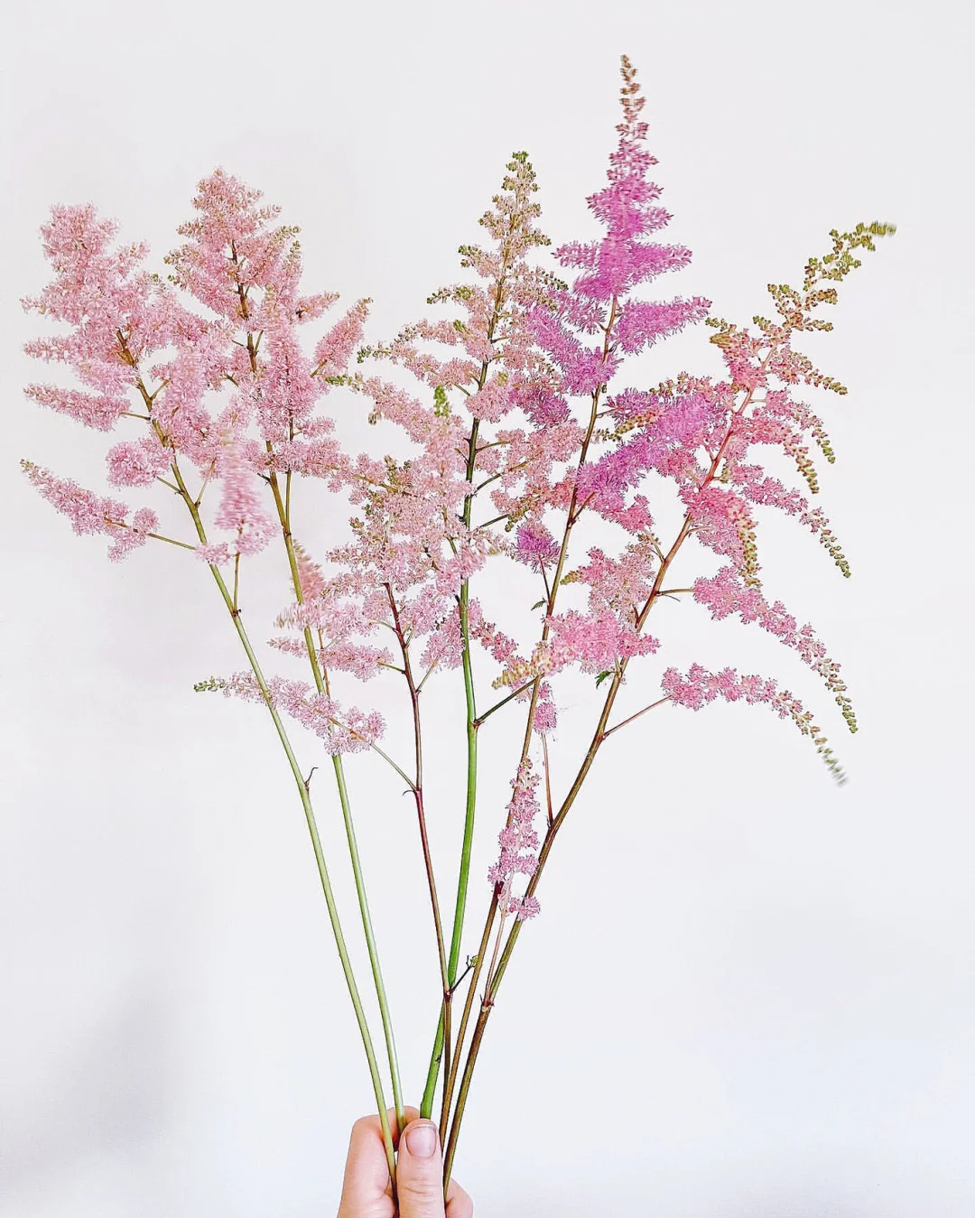 💖💖搭配:落新妇可搭配韩式风、自然风、现代风等风格花束,能够增加花束的美观性和韵律感;在插花中常用作中层材料,使作品的高级感和典雅美更上一层楼。