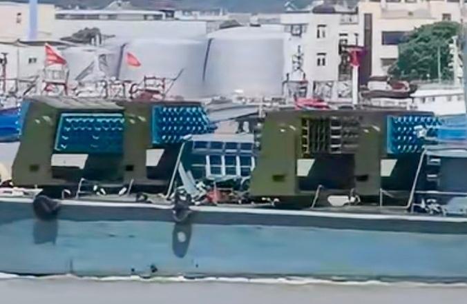 陆军登陆艇安装了4组火箭发射器,似乎是陆军的火箭破障器直接上艇了。所谓破障就是爆破、扫雷等技术手段清除障碍物,方便登陆部队的上岸推进。之前“九江”舰就通过专门改装撤除反舰导弹增加了大量火箭发射器进行滩涂的障碍扫除。 如果这些挺能改成无人艇那么就更棒了,直接做第一波清除支援登陆。