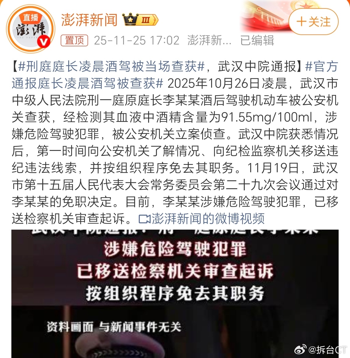 原来是涉嫌危险驾驶罪,已经移交检察机关审查起诉。吓死我了。还真以为他能平稳落地,提前退休了呢。