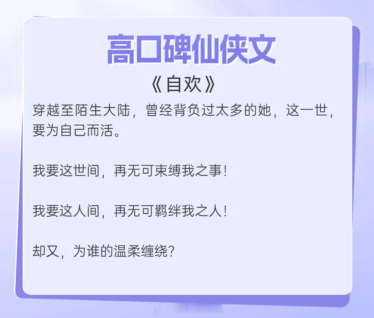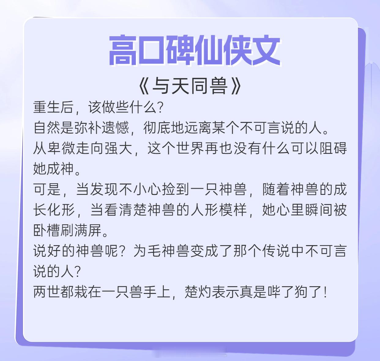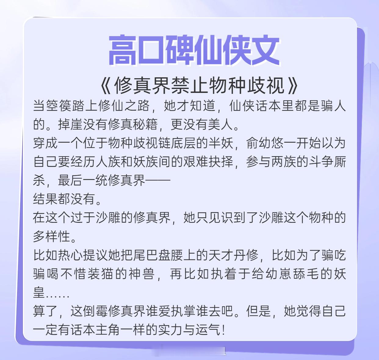 【高口碑仙侠文】有甜到齁心,有虐到肝疼,书荒必备!都是经典网文,不要错过!1、《裂山海》作者:流水2、《此间·燃灯生莲》作者:江雪落3、《勿扰飞升》作者:月下蝶影4、《修真界禁止物种歧视》作者:暮沉霜5、《师父他太难了》作者:扶华6、《求魔》作者:曲小蛐7、《与天同兽》作者:雾矢翊8、《自欢》作者:袖侧9、《神仙肉》作者:一度君华