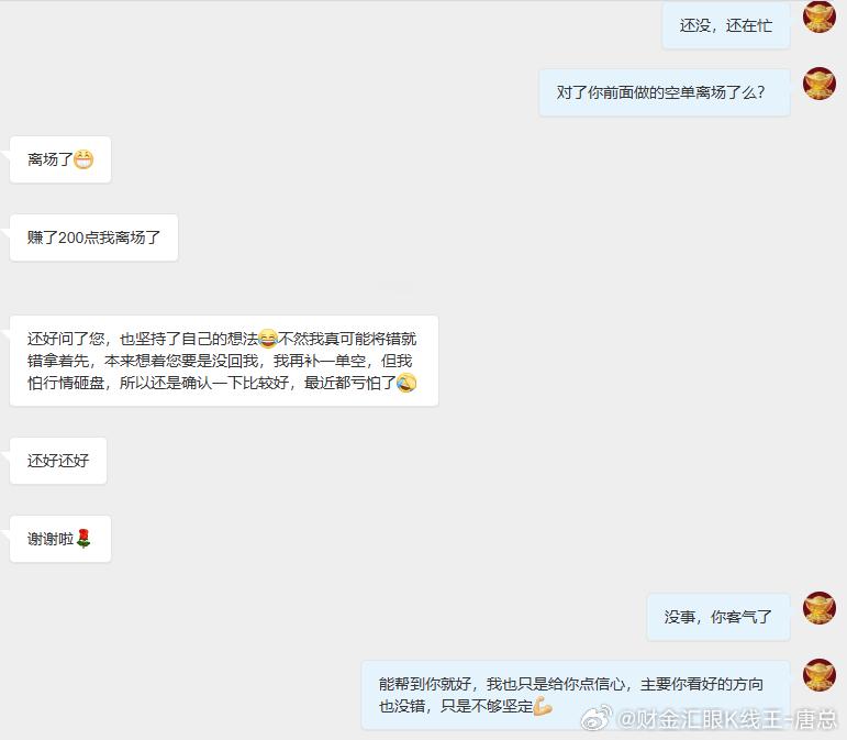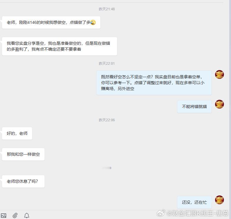 忙着忙着,突然收到一位私信我的朋友发来的好消息。平时我们也有交流,其实他看的方向没有错,入场时间和位置也是合适的,缺的只是一点自信。投资这一行,最重要的就是相信自己。如果没有做好准备,先别急着进场,毕竟投入的都是真金白银。可一旦你看准了方向,就请坚定一点。就像今晚的他,虽然一时点错单,但及时调整、回归判断,最终收获了不错的成果。别让犹豫左右你的决定,也别因一时盈亏扰乱心智。信自己,才能走得更稳。