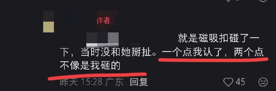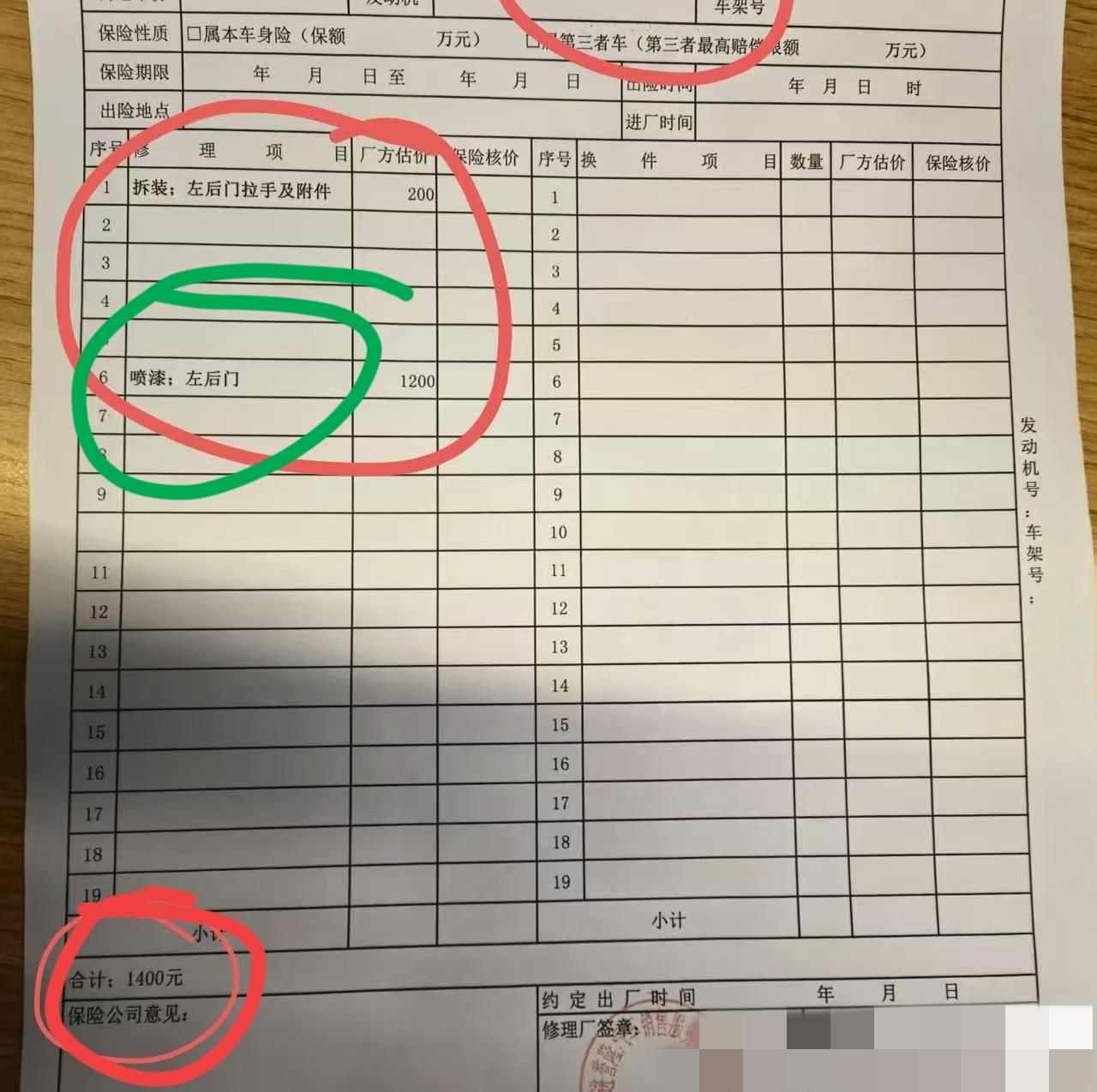 就因拿着手机出去,送个餐要赔1400元,事主感觉自己太冤。 近日有网友发文,称有顾客在店门口取餐,她一手拿手机一手提餐出去送。 结果手机上的磁吸扣(图三)碰车上了,当时她还摸了一下说没啥问题,就转身回店了。 过了十几分钟车主拍了照片(图二)过来,说她刚才将车漆刮掉,有俩白点。 她让车主来店面谈,店主称要第二天先去4S店。 开始车主跟她说赔800,后来4S单子出来了,是1400。 她找其他修车店,这种掉漆的修复费用300就行,但车主不干。 从监控看她的手疑似碰到的是左前门,可4S店维修单是写得是“左后门”。 女网友也不相信自己随意一碰就能碰出俩个白点。 但问题是当时她没报J,没有现场,帽叔叔也无法取证,而且也没有更多更清晰的监控视频可以参考。 现在这事就是双方都说不清的状态,但因为说不清就要掏一千多块,相信大多数人都是不愿意的。