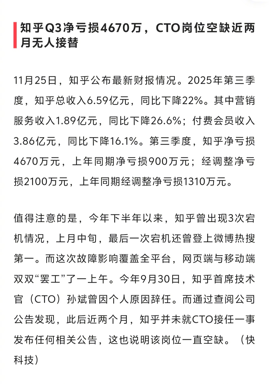 知乎CTO能空缺两个月,内部找不到合适的接替者吗?想要去外面找一位懂技术架构、社区产品逻辑,同时还要契合知乎业务调性的CTO,估计不好找。