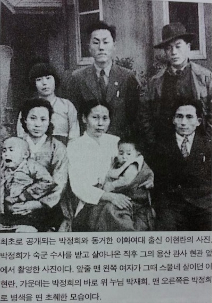 【来自投稿】朴正熙与初恋李现兰和姐姐的合影,李现兰(左)、朴在熙(中)、朴正熙(右),俩女子抱的都是朴正熙的二姐朴在熙的孩子。此时,李现兰与朴正熙的感情已经走向破裂,李现兰于1948年年末为朴正熙生下一子,但这个孩子在出生六个月后夭折,李现兰和朴正熙也于1950年分手。朴正熙在朋友的婚礼上对她一见钟情后,在朋友的撮合下,两人同居在一起,并为朴正熙诞下一子,但这个孩子很快便夭折了。不幸的是,这个孩子从诞生到夭折的短暂期间,朴正熙都因为被关押,根本未能见到这个孩子。这件事情也彻底毁灭了两人间的关系,最终在战争爆发前夜的1950年2月,李现兰离他而去。
