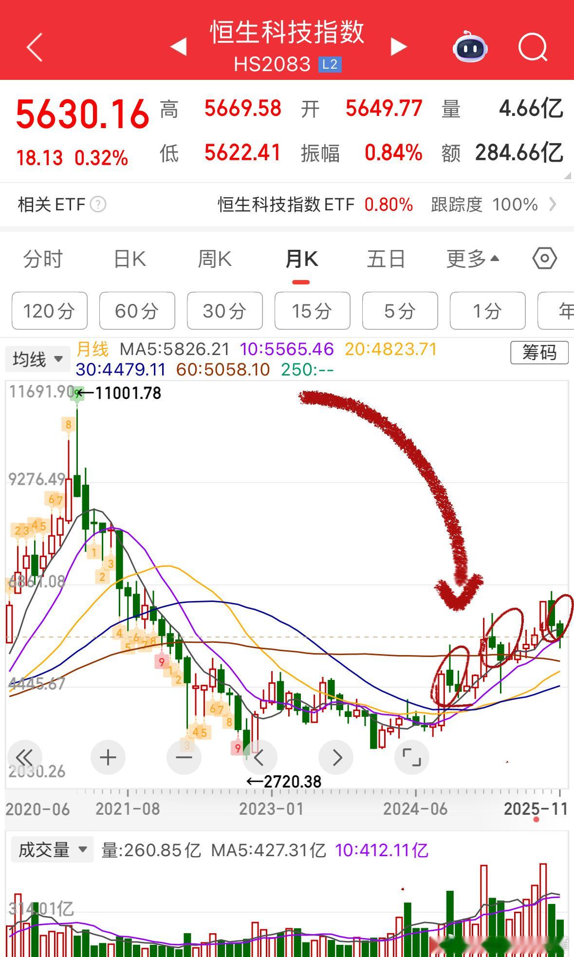 恒生科技自去年9.24以来行情调整规律都是两个月为周期!截止十一月份刚好又是两个月了顺大逆小的策略就特别适用于现在!
