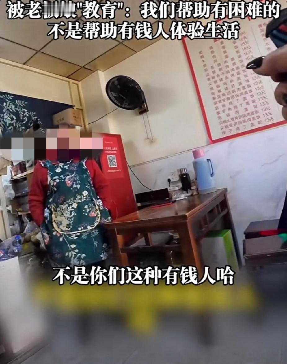 怼得好!近日,一女子从杭州徒步到上海,不花一分钱体验生活进饭店,老板娘:“我们是帮要饭的,不是帮你们这些连一顿饭钱都舍不得给的有钱人的!” 其实,路上女子已经问过一名小姐姐,表示自己是徒步过来的,路上吃和住都需要自己解决,询问小姐姐能否帮个忙,小姐姐果断拒绝! 随后,女子才走进了这家餐馆:“你好老板,我是徒步来体验生活的,能在您这吃一顿饭吗?” 老板白了女子一眼:“你们有钱人还来体验生活,连一顿饭钱都舍不得花。” 女子有些尴尬,勉强解释着:“不是舍不得,是不让花一分钱,是一堂生活体验课!” 而接下来老板娘更是失去了耐心,直接怒怼:“我们的东西可以用来帮助那些有困难的人,可以给要饭的,但不会给你们这种什么体验生活的人。” 老板娘一席话,获得了无数网友点赞!当今社会没有钱就是寸步难行,天下没有免费的午餐,有多少人整日起早贪黑勉勉强强养家糊口! 如果真的要体验生活,就不该走进正儿八经的饭店。而是应该去看看那些真正没有钱的人是怎么吃饭的,去看看流浪汉是在哪里睡觉的。而不是打着“体验生活”的旗号免费享受别人的优质服务。 对此,你怎么看呢?女游客徒步 杭州徒步