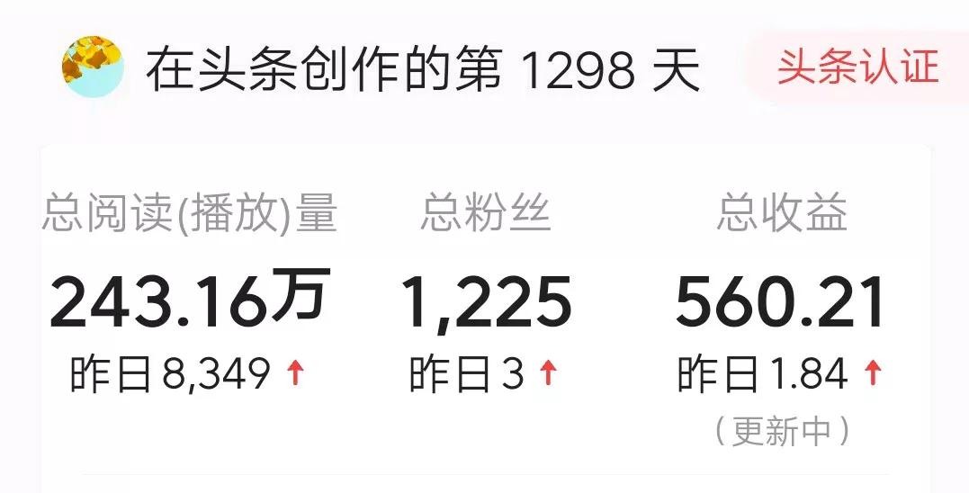 是我看错了吗?今日头条的政策真的变了?今天到手的收益就这么点,和一前相比快差出十倍的收益了,但我还的坚持写作,因为我爱好写作,我会一直写下去的。