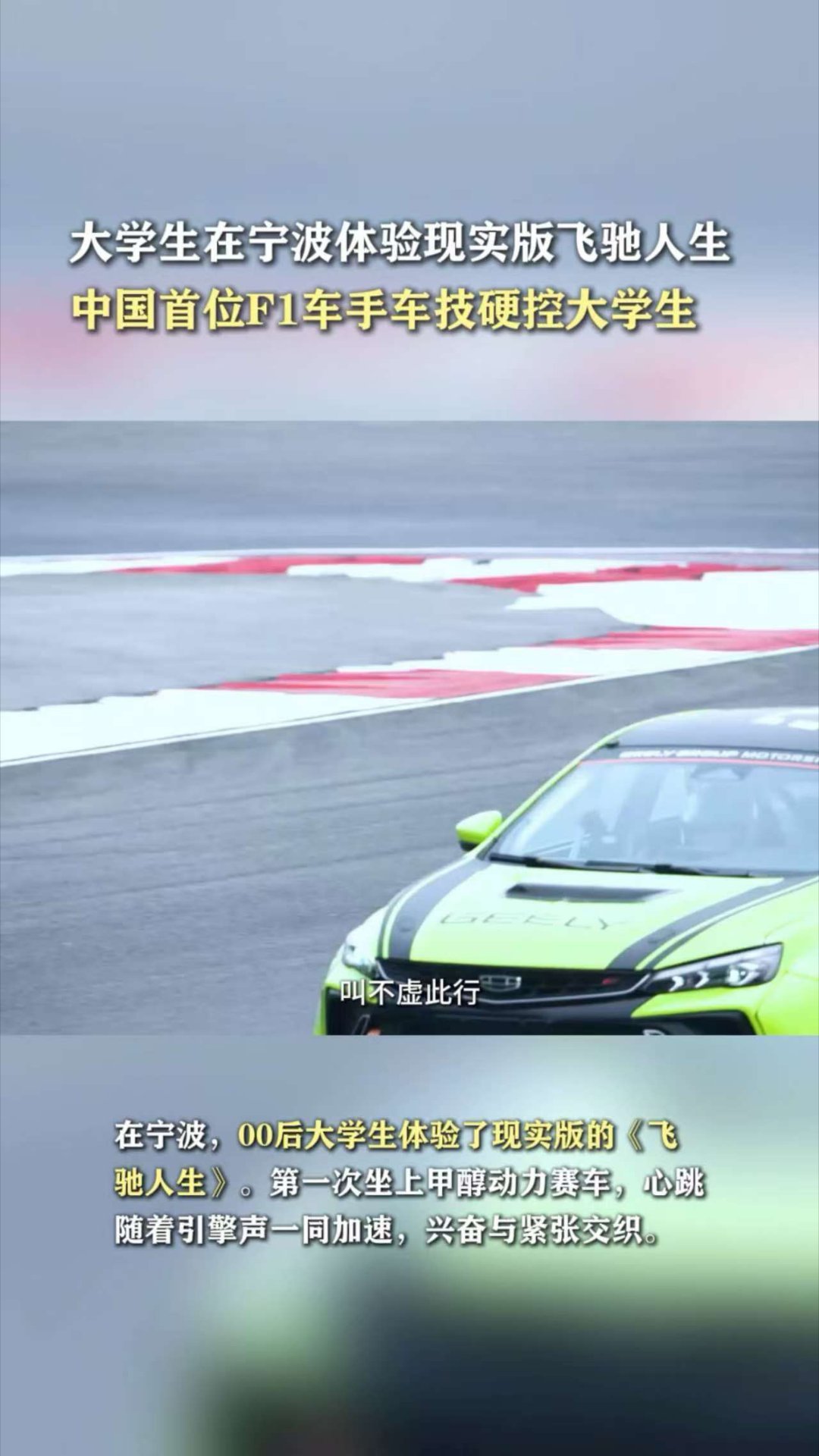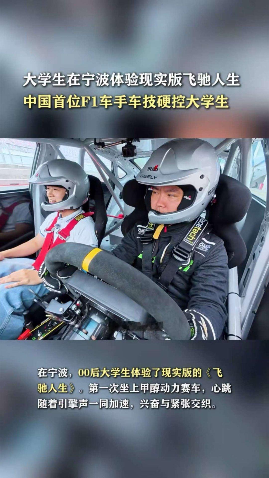 大学生在宁波体验现实版飞驰人生 当课堂搬到F1赛道,中国首位F1车手亲自领航!专业指导解锁驾驶技能,引擎轰鸣点燃青春热血,每一次加速都藏着追梦的滚烫与温情,这才是青春该有的励志模样~ 中国首位F1车手车技硬控大学生