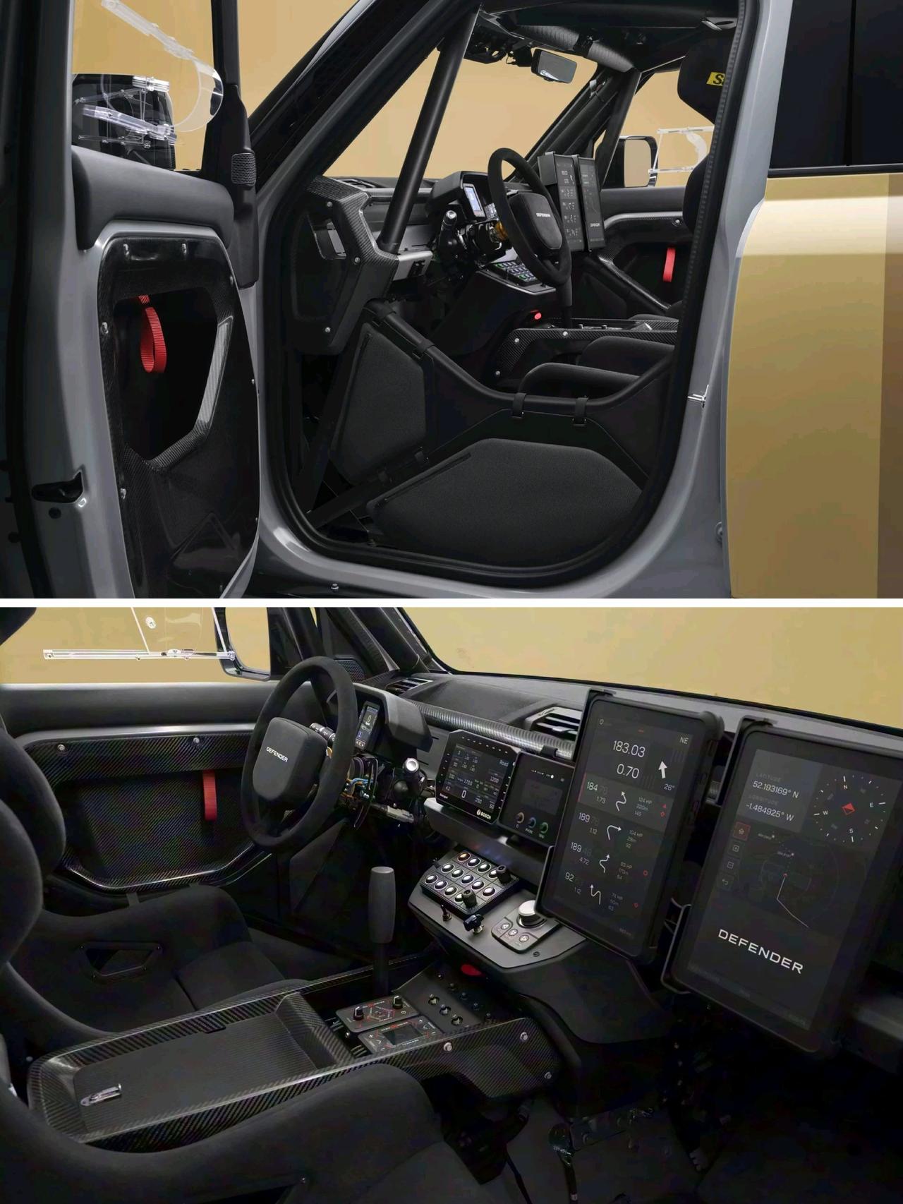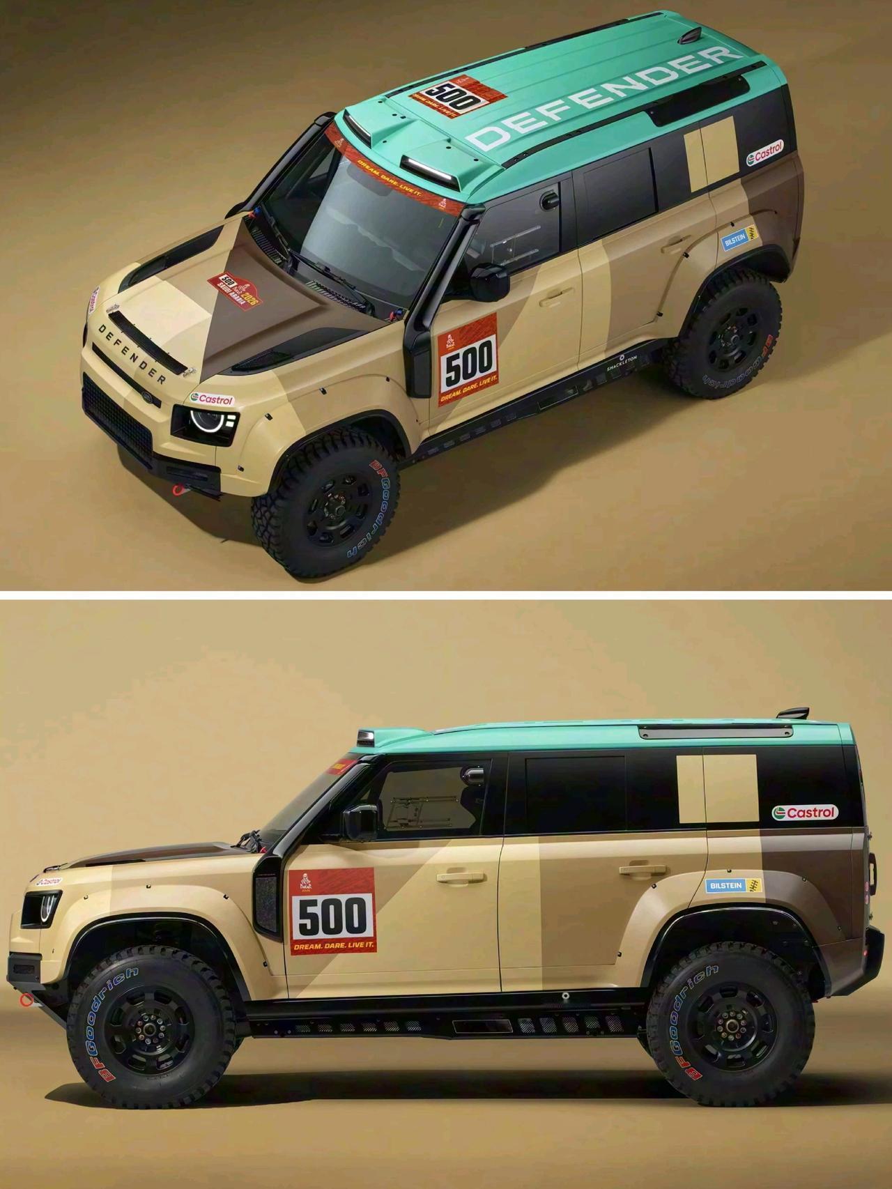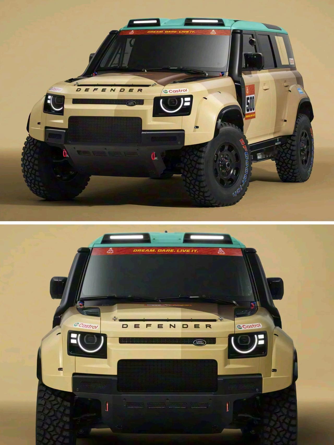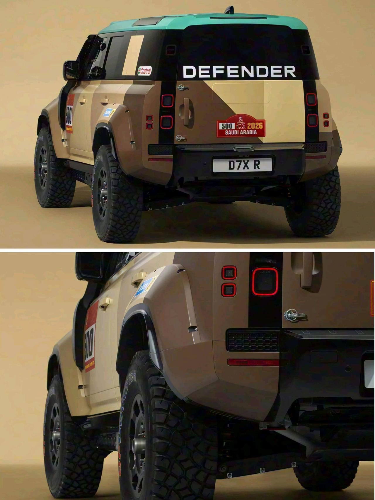路虎卫士达喀尔D7X-R 专门为达喀尔拉力赛& 世界拉力越野锦标赛打造 「改装」 Bilstein减震器 前6后4活塞卡钳 35英寸越野胎 车内增加防滚架 6点式赛车座椅 后排座椅移除 「动力」 搭载4.4T V8发动机 匹配8AT变速箱 路虎卫士 路虎 卫士 达喀尔