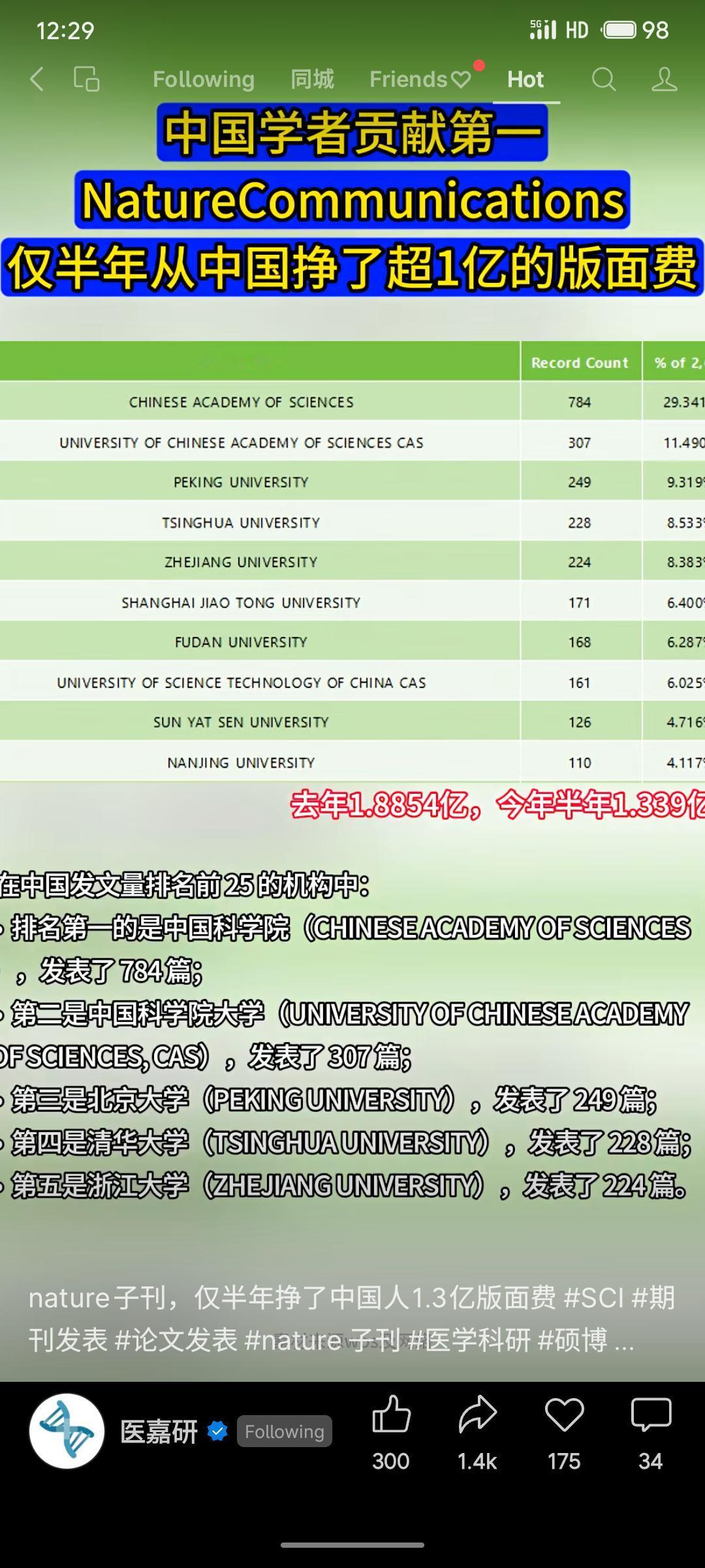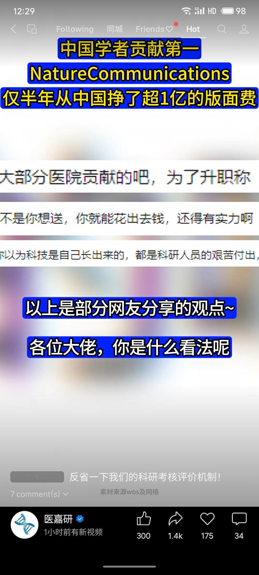 最新数据显示,中国科研机构在《Nature Communications》发文量全球第一,其中中国科学院以784篇居首。该期刊半年内向中国收取版面费超1.3亿元,引发对科研评价体系与国际期刊商业模式的讨论。 中国学者撑起《Nature》子刊半边天,顺便给国际出版业充了全年KPI,这知识出口转内销力度属实顶级。