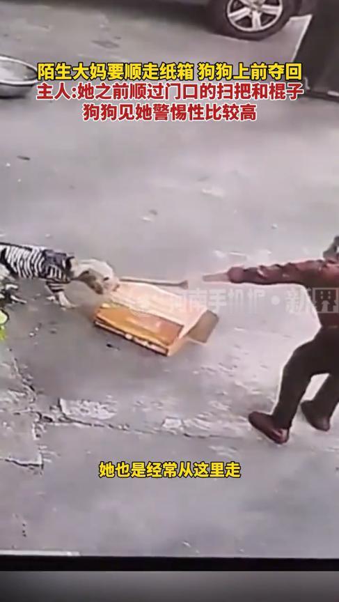 “活不起了?”11月25日,广东佛山,一老太路过店门口时,看到一旁放着空箱子,但害怕被狗咬,就拿木棍把箱子挑了过来,狗狗见状立即冲过去,死死咬住箱子叼了回来,老太最终气急败坏的走了。网友:好担心她回来报复狗狗! 老年人省吃俭用惯了,一个废弃的纸箱、空瓶子,对于他们来说都是巨大的财富,捡废弃的纸箱自然没什么问题,但是未经主人允许,就将门口的东西捡走,这就有些不道德了。 男子在路边开了一间小店,平时习惯将废纸箱、卫生工具放在门口,只是没想到,他的这一习惯却被一名老太太盯上了。 老太太经常在店门口溜达,见到有纸箱子、扫把等,就顺手拿走了,男子为了不被白嫖,还将狗拴在门口,只是没想到,老太又想出了新招,自己够不到,就用工具把箱子拽过来,然后再拿走。 当时男子有事外出,狗狗看到老太走过来后,立即警觉起来,老太尝试将纸箱子扒拉过来,就在她准备伸手去拿时,却被狗狗死死咬住,硬生生的叼了回来。 老太气急败坏,最终只能无奈的离去。男子回来后看到纸箱出现在屋里,还有些纳闷,看了监控才了解事情的经过。 网友看后表示,这样的老人真是可恶,人家明明没有扔,就这么擅自拿走了,这分明就是偷东西,这种人真是连狗狗都不如! 信息来源:《陌生大妈要顺走纸箱狗狗上前夺回,主人:她之前顺过门口的扫把和棍子,狗狗见她警惕性比较高。》新界视频