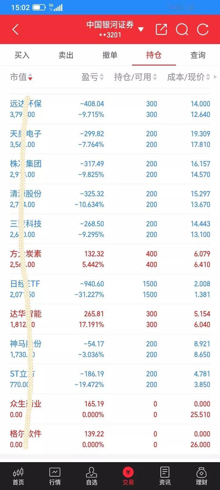 2025.11.26,昨天反弹了一点点,又充满幻想,舍不得卖,太贪心了,总是心存幻想,赚钱舍不得卖,总要等亏钱,亏得无法忍受的时候再割肉。今天指数没有跌多少,但是我持有的又全面下跌,特别是重仓的大跌,反弹赚一点浮盈,又亏回去了。 昨天格尔涨停舍不得卖,还想今天继续涨停,今天高开冲高还是舍不得卖,总是等待下跌,收盘前以26清仓卖掉了。持有4天,最终才剩下100多块钱。持有的股票太多了,赚钱的先卖掉吧。卖飞了也算了,今天众生又冲高到26.99,还想赚更多,舍不得卖,总是等到下跌才卖,收盘前下跌了以25.79清仓卖掉了,赚100多块钱算了,减少股票数量。去补仓亏损的。 感觉又回到以前的老路上了,又补仓亏损下跌的股票了,人性真是难以改变,赚钱想赚更多,下跌了就恐慌了。今天计划了对3只股票做t,但是都做错了,亏损进一步扩大。以12.92买入100股海陆,上涨到13块多舍不得卖,等到下跌了,才以12.79卖掉,做t失败,又多亏了13块钱。以13.27买入100股金森,差不多买在最高价,总想等上涨,但是却逐步下跌,下跌亏钱舍不得卖,下午越跌越猛,看到实在没有上涨的迹象了,以12.75卖掉200股,卖掉之后又反弹了,又后悔了,于是以12.68买回来100股,继续下跌,又以12.63买回来100股,做正t失败。亏了50多块钱,卖掉又买回来,算做反t吧,少亏19块钱,当补仓100股吧。以37.01买入100股上能,上涨了一点点,也是大跌,这只股票天天上蹿下跳的,上涨诱多,然后往下砸,上涨一点点,舍不得卖,下跌亏钱了才舍得卖,实在看不到反弹的迹象,于是以36.30卖掉100股,又多亏了71块钱,卖掉之后又反弹上涨,又后悔了,于是以36.25买回来,又买贵了,多亏了几块钱。又当补仓,下跌中补仓,越补亏损越多。昨天才亏几百块,好不容易看到解套的希望,今天又大跌,还补仓了,这只股票亏损又达到一千多了。 今天做t都失败了,多亏了一百多块钱。清仓了2只股票,减少股票数量。 今天达华又涨停了,两个板了,以涨停价6.04减仓卖掉100股,先锁定部分利润,避免跌下来又全部亏回去了。还有300股,明天上涨再继续卖。 今天总市值7.01万元,总资产10.27万元,今天总体账户亏损1382元。昨天回来一点点,今天差不多又都亏回去了。仓位太重,总是浮盈,下跌止损实亏 ,要逐步降低仓位,降低贪心。